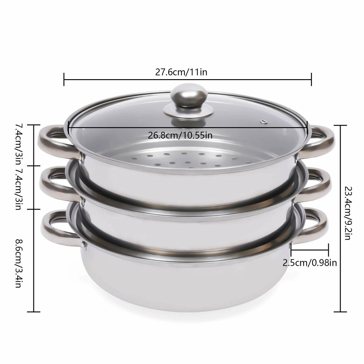 - Versatile Applicability: Whether utilized on an induction cooker, electric furnace, electric ceramic stove, or gas stove, this 3-tier steamer effortlessly accommodates various cooking platforms.