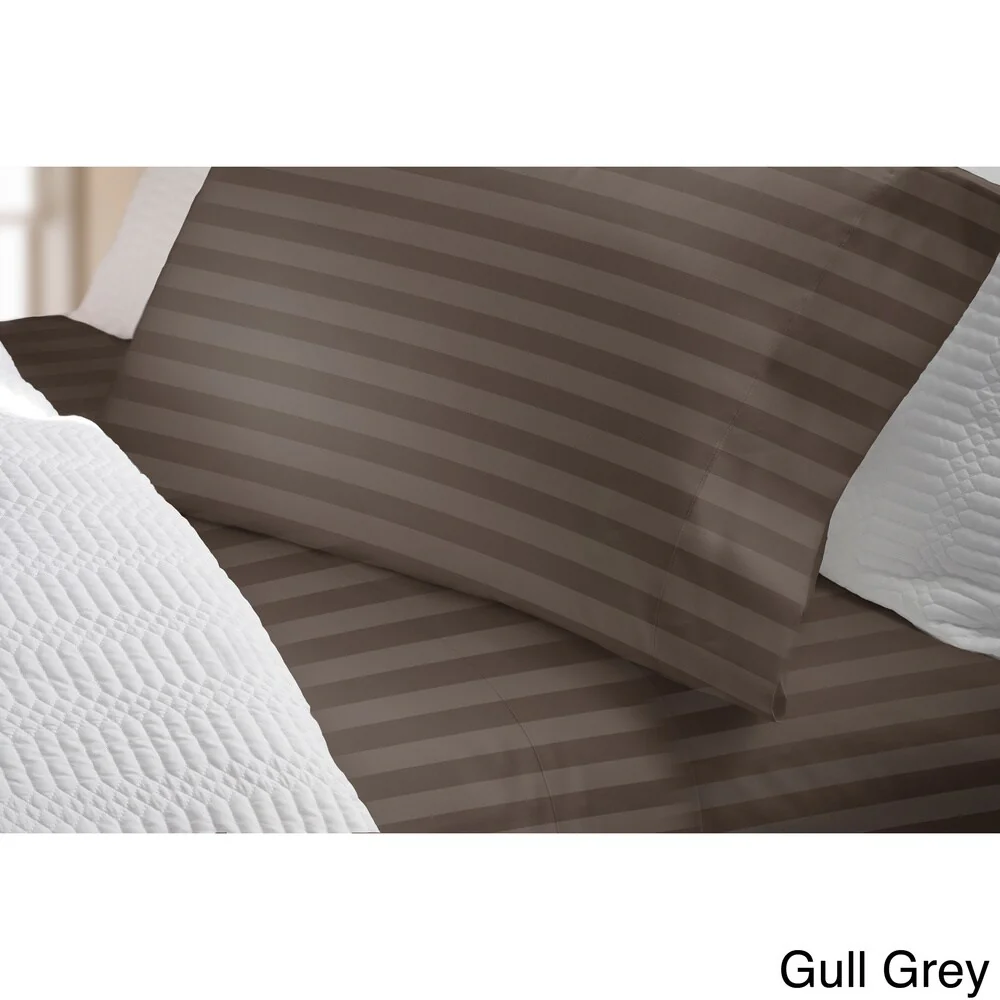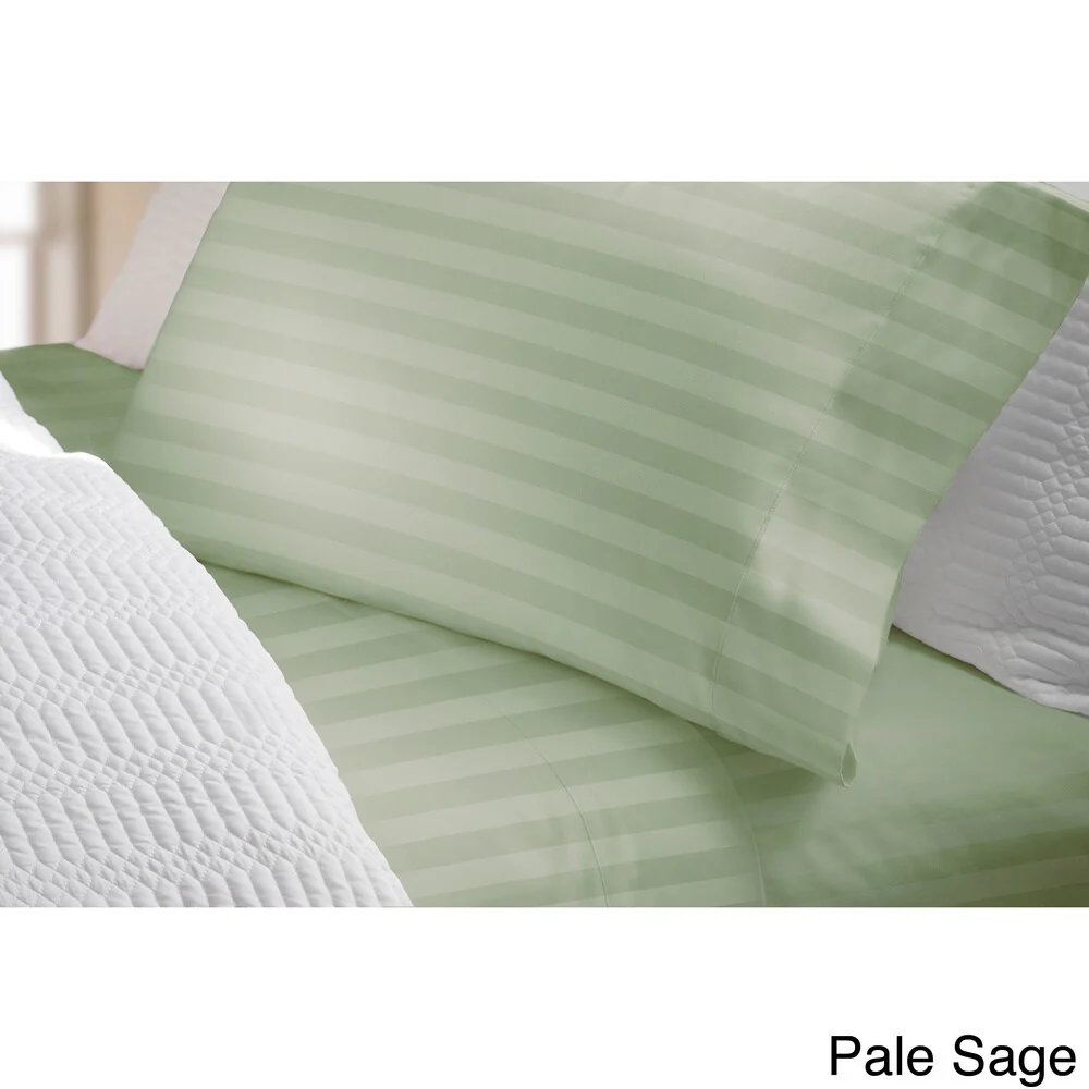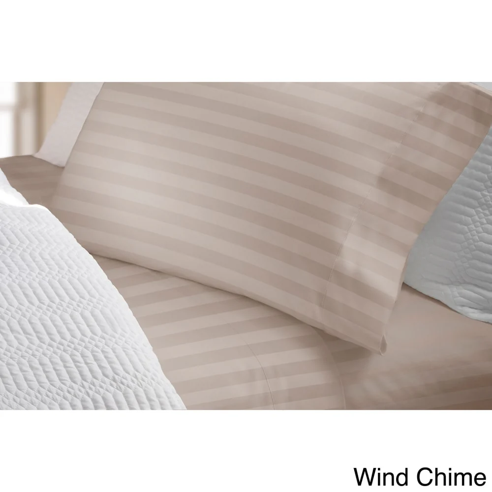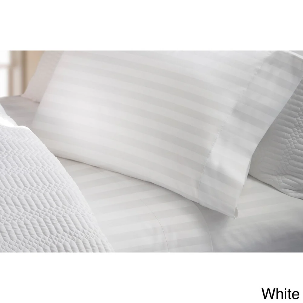 Sleep in ultimate comfort with this sheet set from Blue Ridge Home. Silky, 300-thread-count cotton is smooth, comfortable, and machine-washable for easy care. The solid color damask stripe pattern comes in a variety of neutral colors, perfect for coordinating with existing bedding. Each set includes one flat sheet, one fitted sheet, and pillowcases for a complete look.