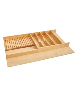 -Organize kitchen drawers with Rev-A-Shelf”s Wood Utility Tray Insert. The 4WUT Series is made of either our classic Maple hardwood with a UV cured clear finish or our walnut construction with satin finish to ensure an acceptable match to any kitchen cabinet. This modern day clutter solution requires a simple drop-in installation with various sizes that may be trimmed to fit your drawer size. :