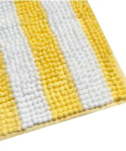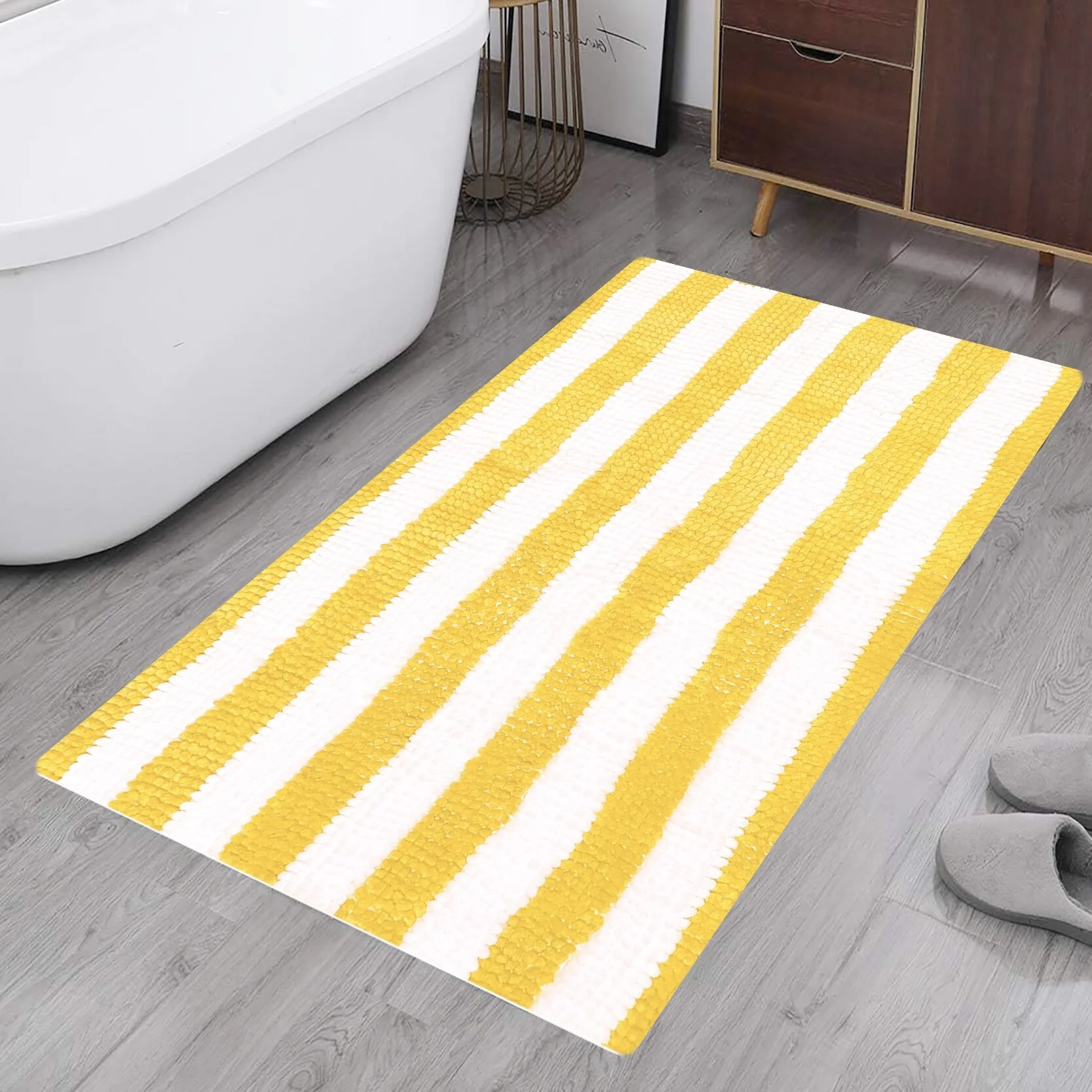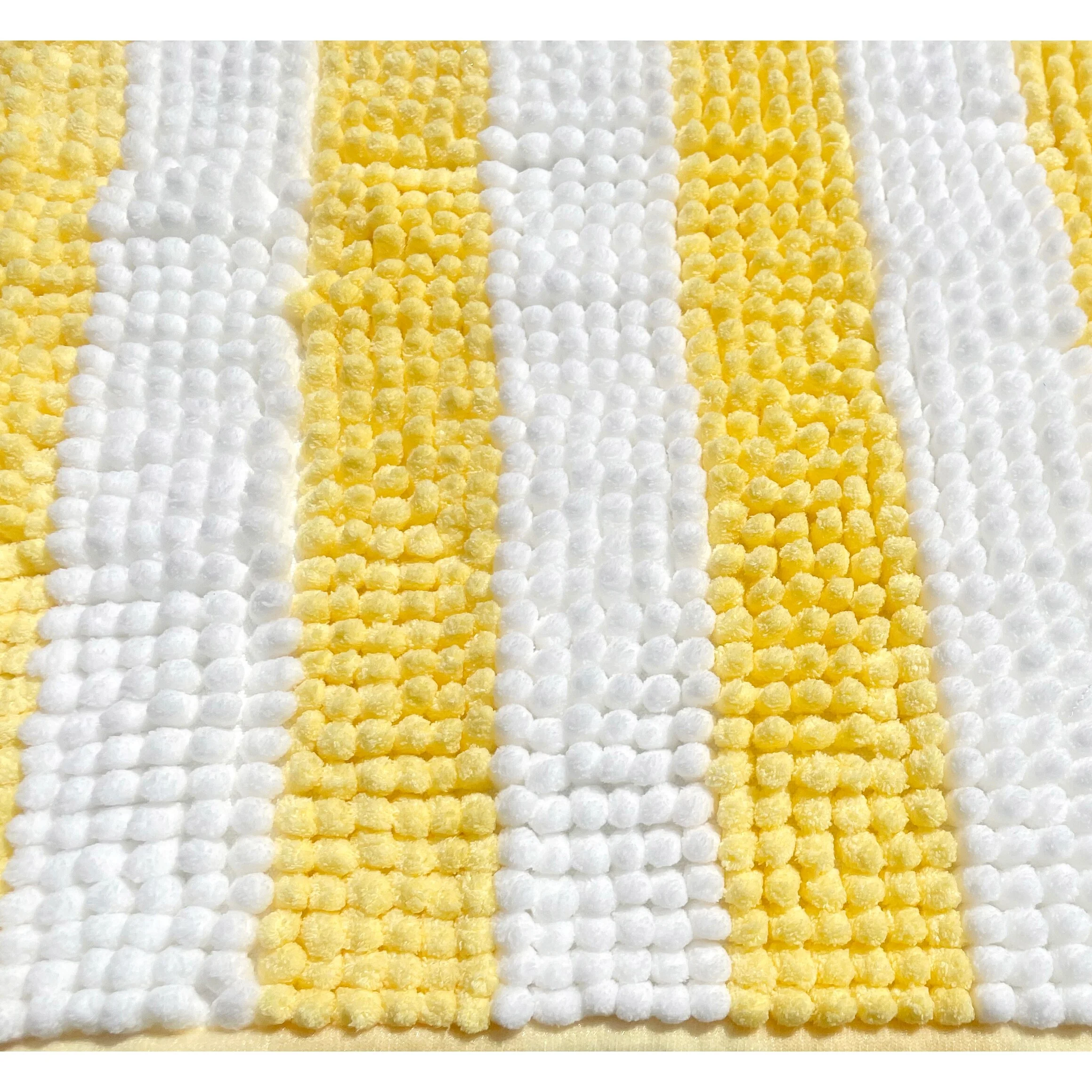 36"x24" – Yellow White Stripe Soft Cozy Plush Chenille Bath Mat Bathroom Rug