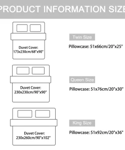 - KING SIZE: Duvet Cover: 90" x 102", Pillowcases 20" x 36"