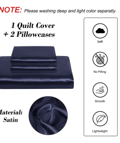 3Pcs Silky Satin Duvet Cover Set with Envelope Pillowcases,