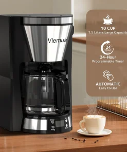 This coffee machine only have one button to operate it, it is very easy to use. The funnel and the filter of this coffee maker are removable, makes it easier to clean. When the coffee was boiled, the carafe handle always keeps cool, helps you avoid scald.