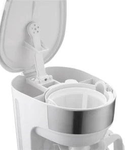 This coffee maker features a function of boil-dry protection, you can leave for work with peace of mind. The funnel and the filter are removable, makes it easier to clean. When the coffee was boiled, the carafe handle always keeps cool, helps you avoid scald. Keep warming plater design allows you to drink a warm coffee at any time.