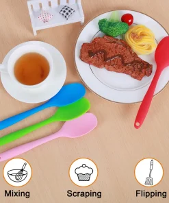 - SIZE & QUANTITY: Package include 4pcs silicone spatulas, different colors for each one: Red, Blue, Pink, Green. Length: 8.3”, Width: 1.57”.