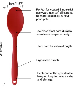 - CONVENIENT DESIGN: Silicone core durable seamless one-piece design, perfect angle design for scraping food, simple and easy. Each end of the spatulas has hanging loop for easy carriage and storage. These utensils will fulfill the demand of home cooking and professional chefs needs.