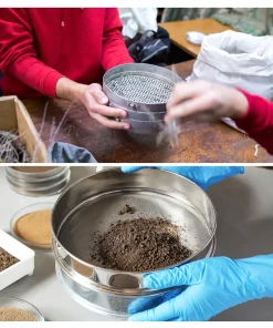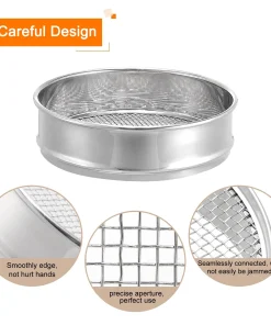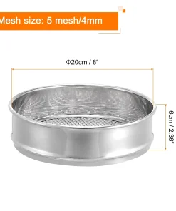 The test sieve is suitable for straining various items, such as fruits, vegetable powder, tea leaves, grains, aluminum, zinc and other metal ash, screws, plastics, sand, soil, etc, good for laboratories, farms and home use