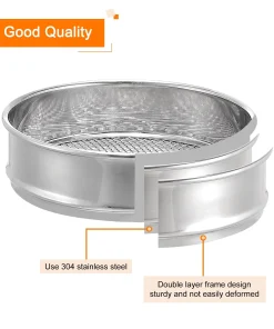 Use double layer frame design, all use 304 stainless steel, strong and sturdy and not easily deformed can bear weight up to 220 pounds, the screen mesh is made of standard 304 stainless steel, with precise aperture, flat and not easy to fall off