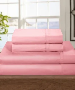 - Set includes: One (1) flat sheet, one (1) fitted sheet, two (2) pillow cases