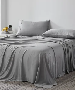Sleep luxuriously with the Southshore Fine Linens Tencel/Cotton Blend 500 thread count Bed Sheet Set. Its soft to the touch and cool against your skin. Tencel™ lyocell fibers are derived from eucalyptus trees that align with the body’s natural thermal regulation system for restful sleep. Features, include breathability and hypoallergenic properties, making this sheet set perfect for sensitive skin. Our extra deep pocket has a depth of 21” for a secure fit on thick mattresses. Color palette offers four choices bone, steel blue, grey, and white. Available in full size bed sheet sets, queen bed sheet set, king bed sheet set, and California king bed sheet set. The four piece bed sheet set includes flat sheet, fitted sheet, and two pillowcases.