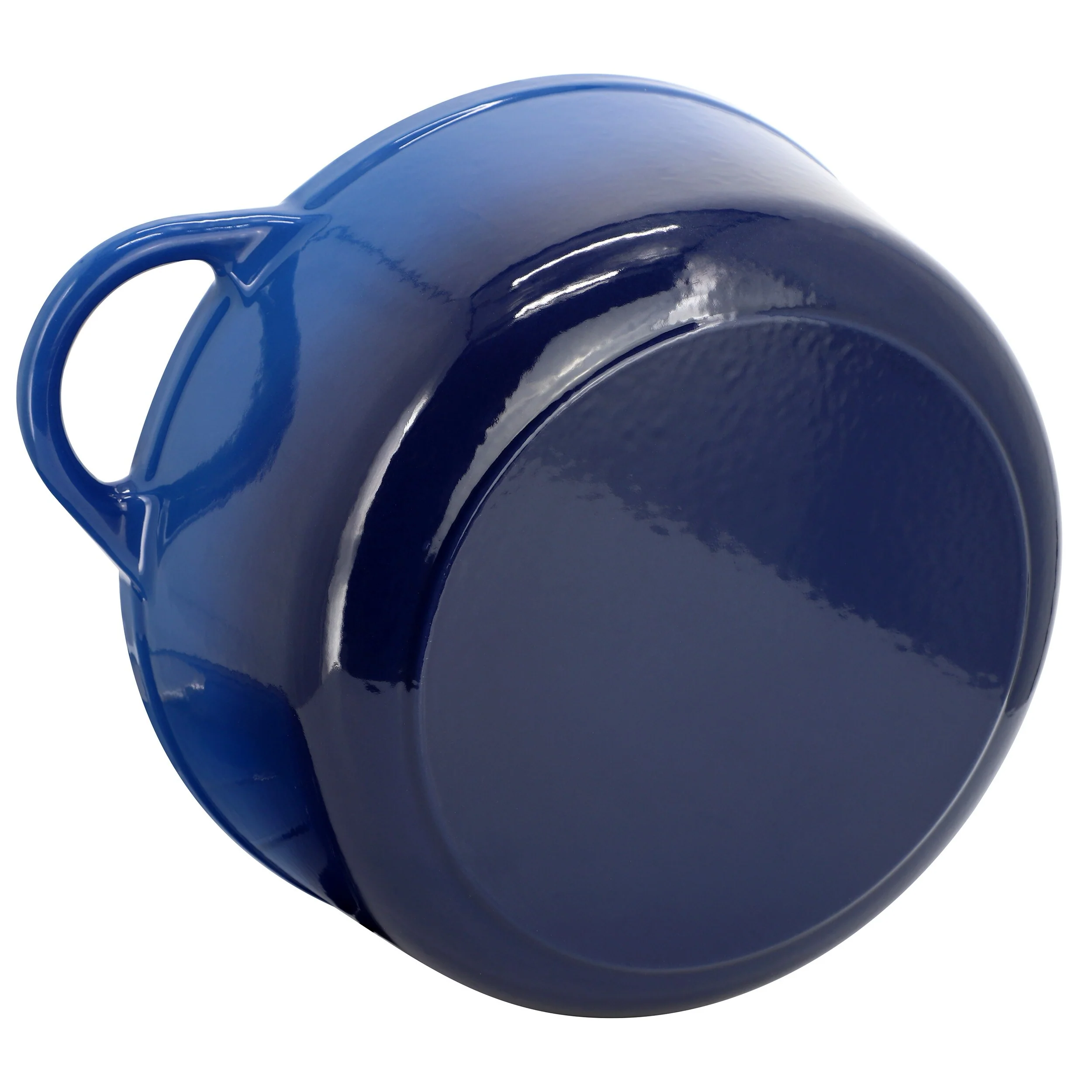 6.35 Quart Enameled Cast Iron Double Handle Dutch Oven Self Basting Lid in Deep Blue