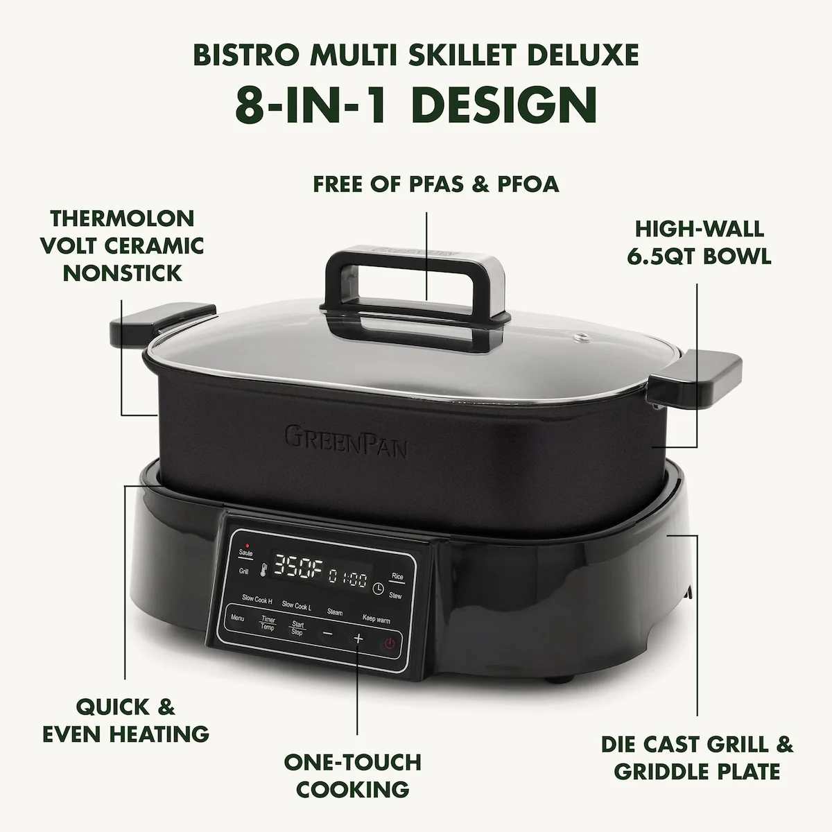 6.5QT Multi-Cooker Skillet Grill & Slow Cooker, 8-in-1 Presets to Saute,Steam, Grill, Stew,Slow Cook, Stir-Fry,Heat, & Cook Rice