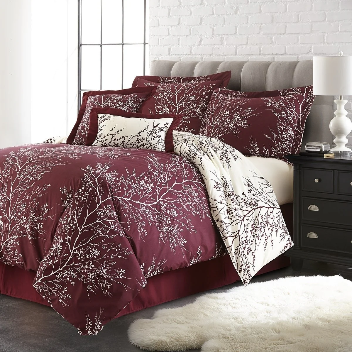 As a kid, you loved to jump in piles of leaves. Land in something much more luxurious with this four-piece fall foliage sheet set by hotel design. Branch out with your bedroom decor with this super-soft microfiber sheet set that won’t wrinkle or fade. The fitted sheet, flat sheet and two pillowcases feature a silhouette design that will keep your decor fresh all year long. Features:Made with 100-percent microfiberAvailable in 24 various colorsIncludes 1 flat sheet, 1 fitted sheet, and 2 pillowcases (1 for Twin)Machine Washable12-inch pocket and can fit a 15-inch mattressTwin Dimensions: Flat Sheet: 66 inches wide x 96 inches longFitted Sheet: 39 inches wide x 75 inches longPillowcases: 20 inches wide x 30 inches longFull Dimensions: Flat Sheet: 81 inches wide x 96 inches longFitted Sheet: 54 inches wide x 75 inches longPillowcases: 20 inches wide x 30 inches longQueen Dimensions: Flat Sheet: 90 inches wide x 102 inches longFitted Sheet: 60 inches wide x 80 inches longPillowcases: 20 inches wide x 30 inches longKing Dimensions: Flat Sheet: 102 inches wide x 108 inches longFitted Sheet: 78 inches wide x 80 inches longPillowcases: 20 inches wide x 40 inches long