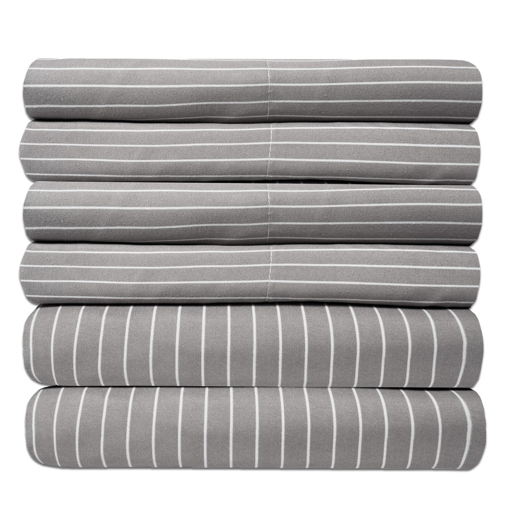 Ideal if you’re looking to take your bedding to the next level, these ultra-soft microfiber sheets feature a modern twist in classic two-tone patterns. Carried in your choice of pinstripe, classic stripe, or windowpane in a neutral scheme, these sheets are also machine washable, for easy care.