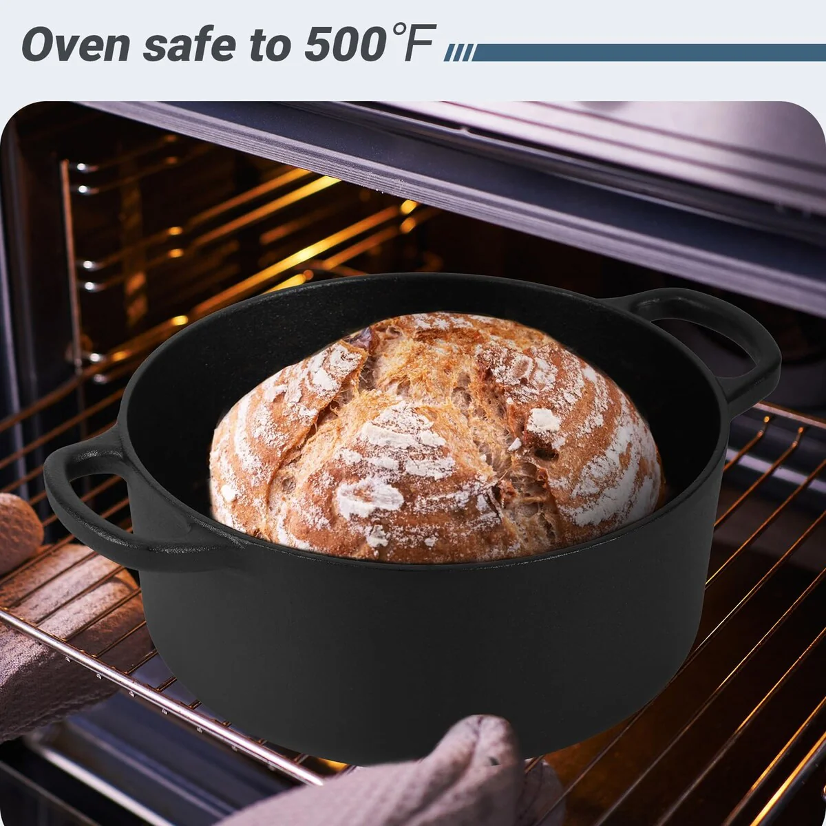 6 QT Basics Cast Iron Dutch Oven Pot with Lid and Dual Handles, Oven Safe up to 500°F Large Cooking Pan,Bread Oven