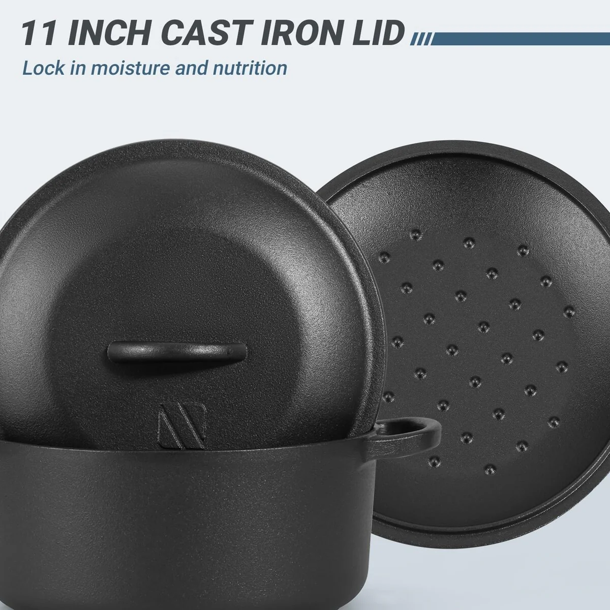 【COOK ANYTHING, ANYWHERE】: Large capacity cast iron dutch oven with lid can meet all your cooking styles, such as baking, souping, stewing, roasting, frying, grilling, broiling, braising, sautéing meats, vegetables and more! It is suitable for most of indoor kitchen cooktops, oven, electric stove, blackstone, also can be used as a multifunctional camping cookware for outdoor grill or campfire.