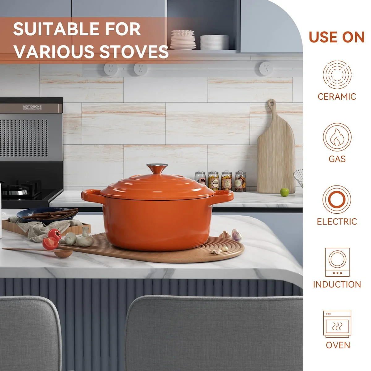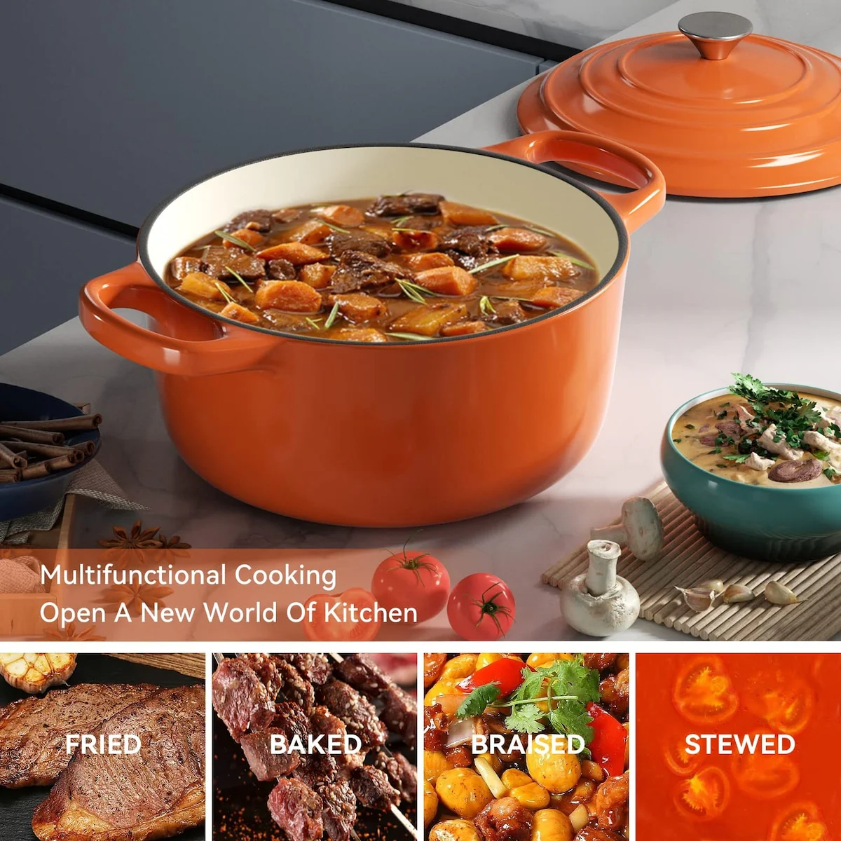 6 QT Enameled Dutch Oven Pot with Lid, Cast Iron Dutch Oven with Dual Handles Non-stick Enamel Coated Cookware