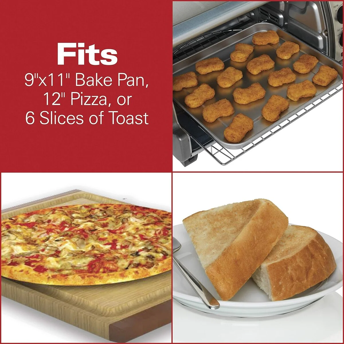 Fits 6 slices of toast, 12 inches pizza and 9 inches X11 inches bake pan Spacious interior gives you room for cooking everything from snacks to side dishes