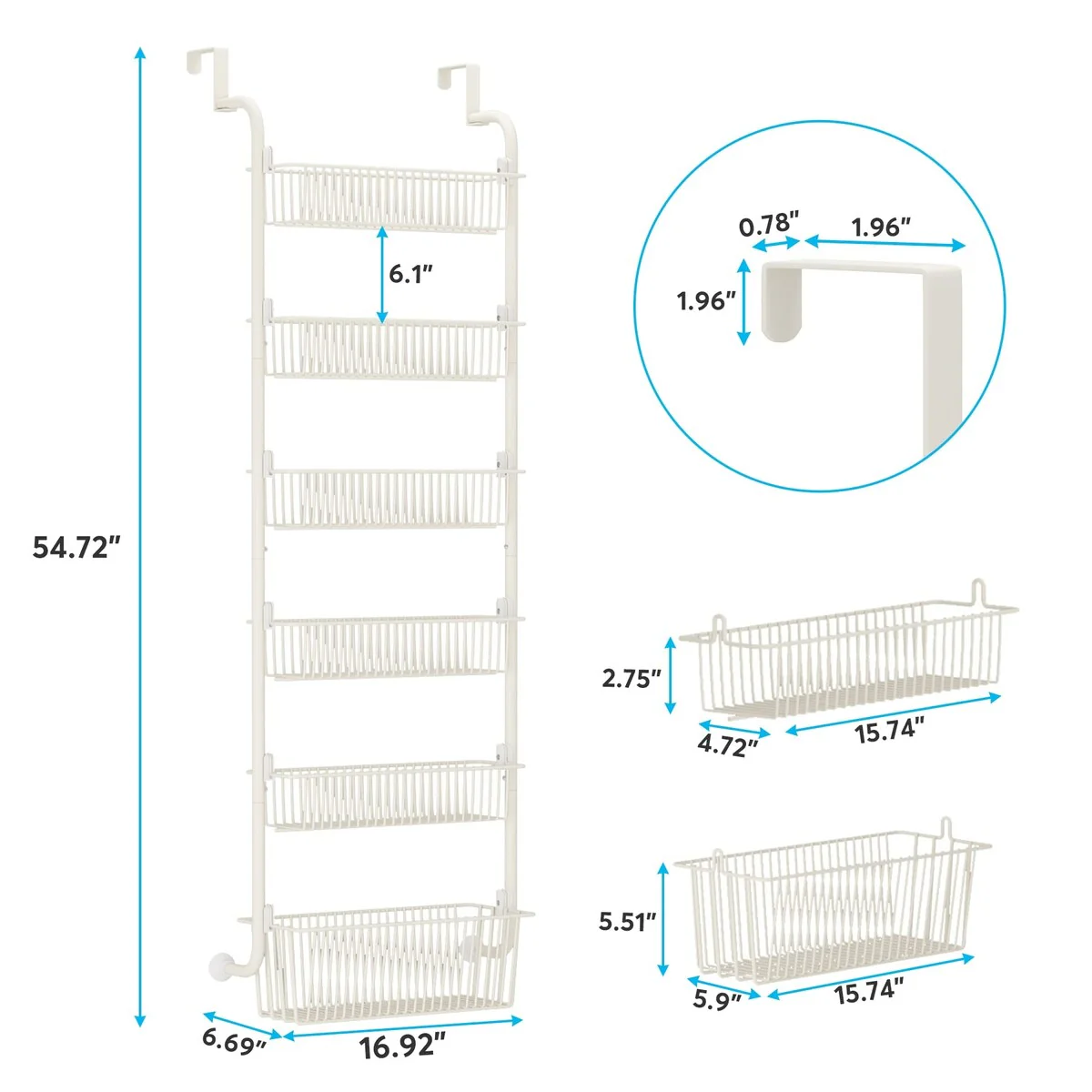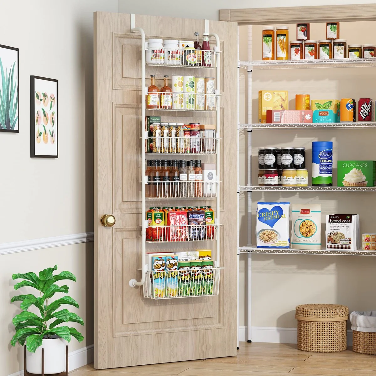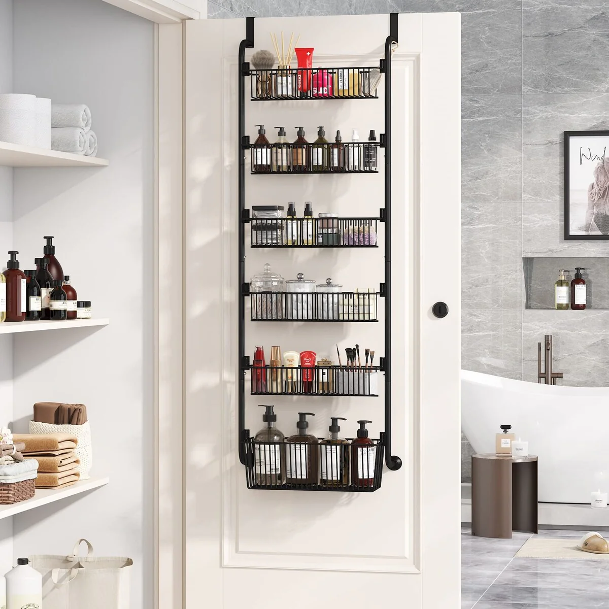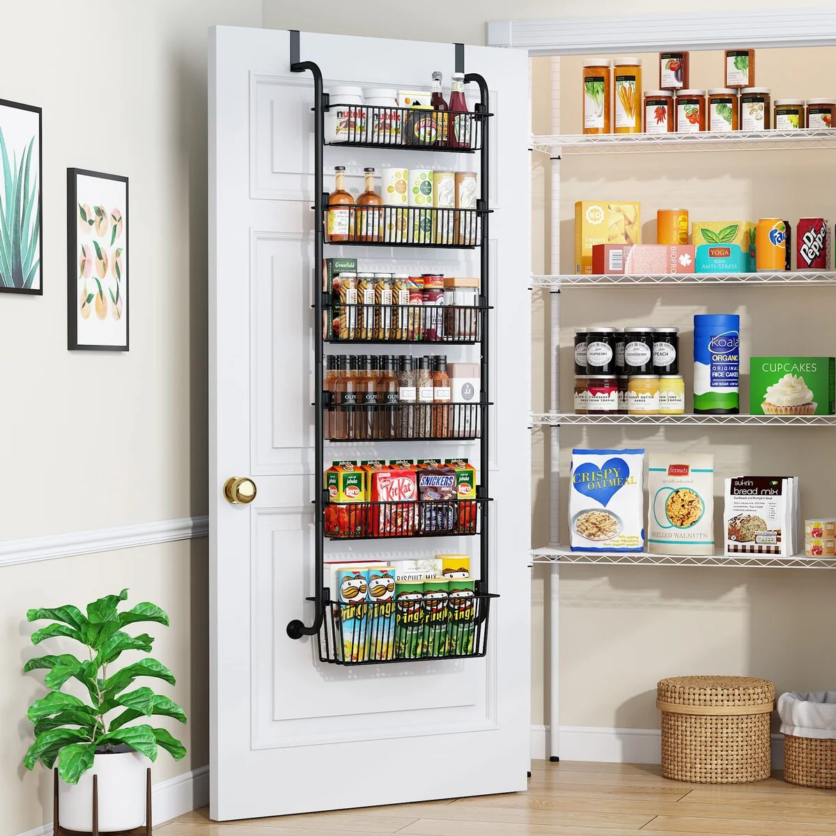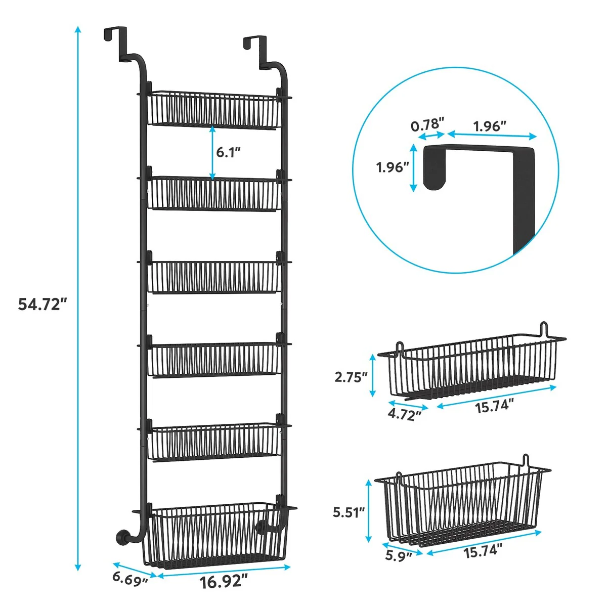 6-Tier Over the Door Pantry Organizer,Metal Pantry Organization and Storage with 6 Baskets,Heavy-Duty Back of Door Spice Rack