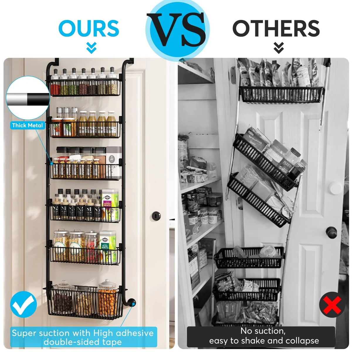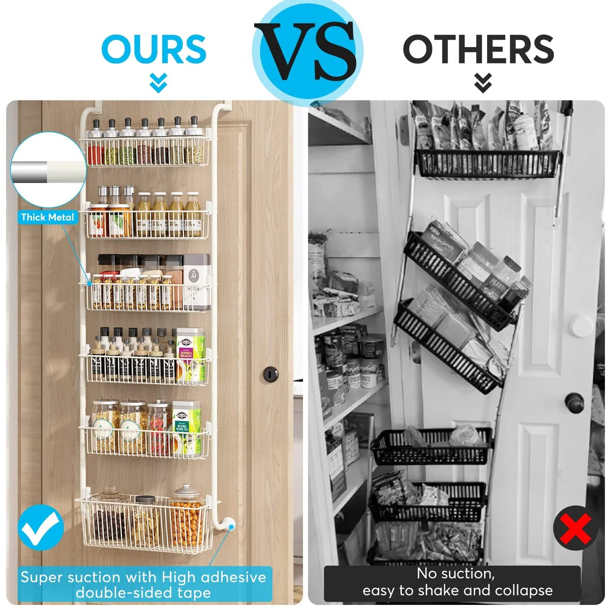 [Incredible Weight Capacity]: Unlike other plastic door organizations, our behind-the-door kitchen organization is made of high-quality powder-coated metal materials, which are super sturdy. Strong baskets can hold your heavy items such as kitchen spice, seasoning, cans or bottles.