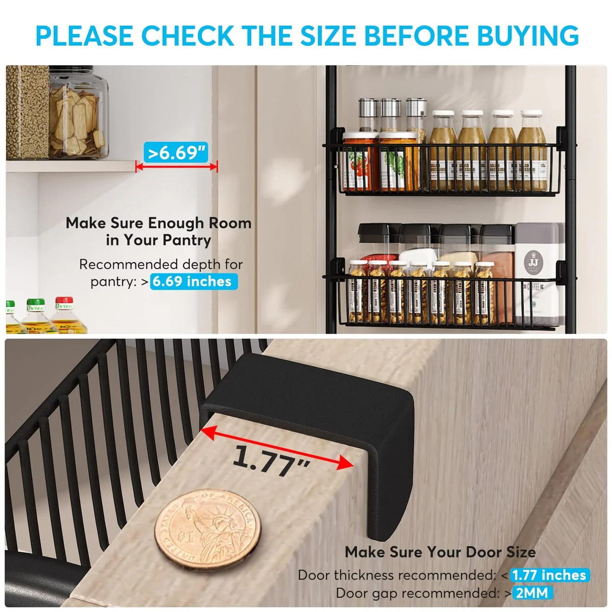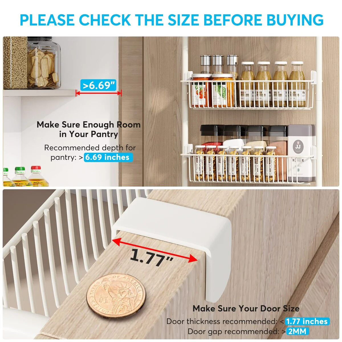 [Suitable For Wooden Doors]: This over-the-door pantry organizer is designed to fit almost wooden doors without any drilling or nailing. Door gap < 195mm. The thickness of the door is < 1.96 inches. Note: Please measure in advance before purchasing.