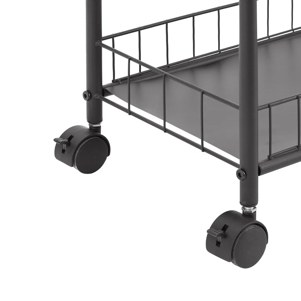 4 easy-glide, durable wheels and ergonomic handle make narrow storage cart easy and convenient to pull in and out from narrow spaces. There are lockable switches for standing on uneven surfaces more stable.