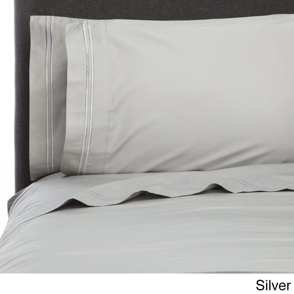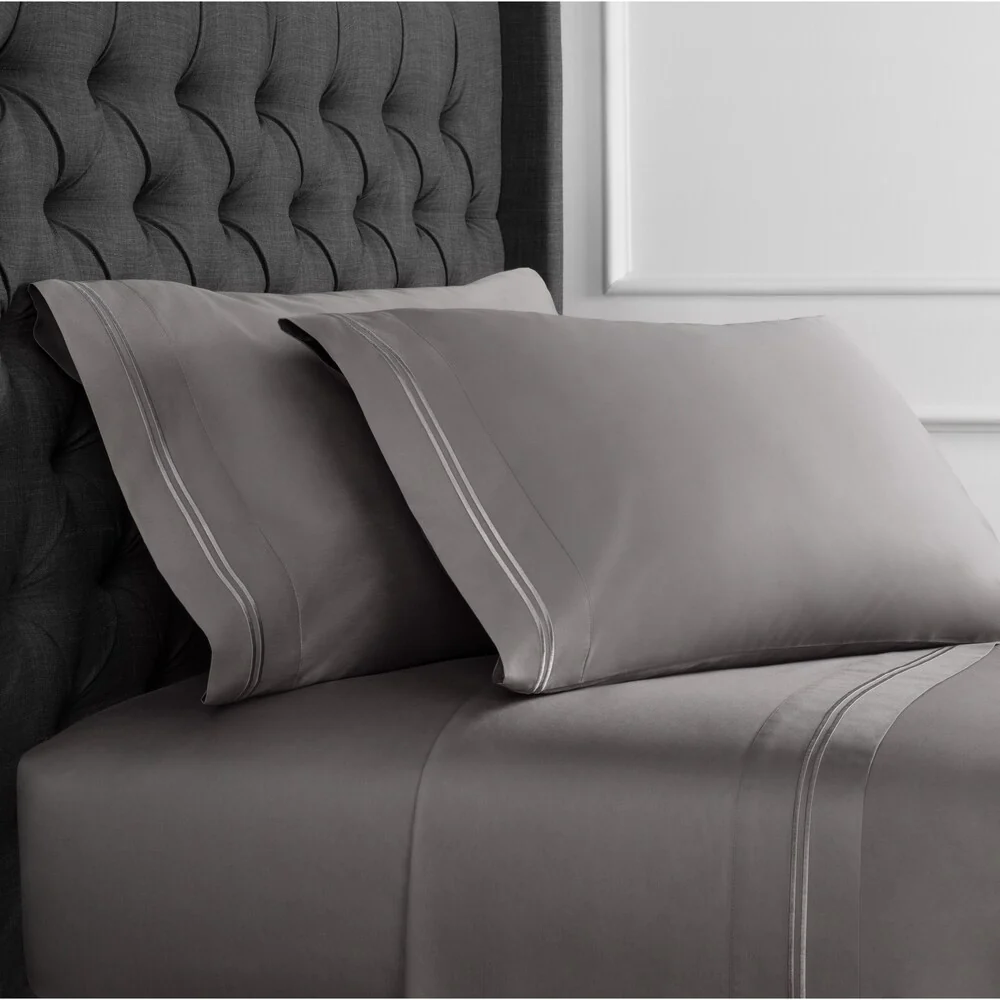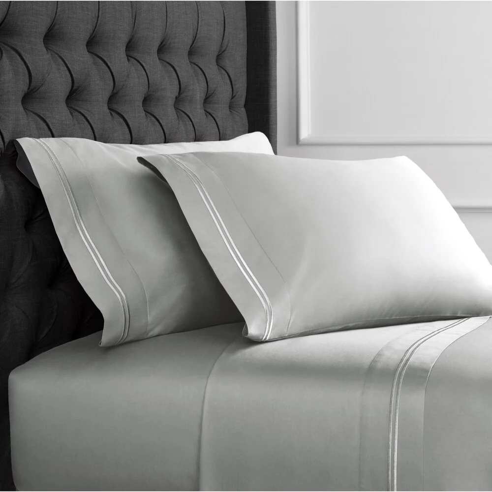 Experience a high-quality bedding experience with this sheet set. Featuring a 600 thread count, this cotton sheet set stays fresh and cool during hot nights and warm on cold nights. Each sheet features an attractive striped embroidery detail that adds a decorative touch to your bedroom’s interior design aesthetic.
