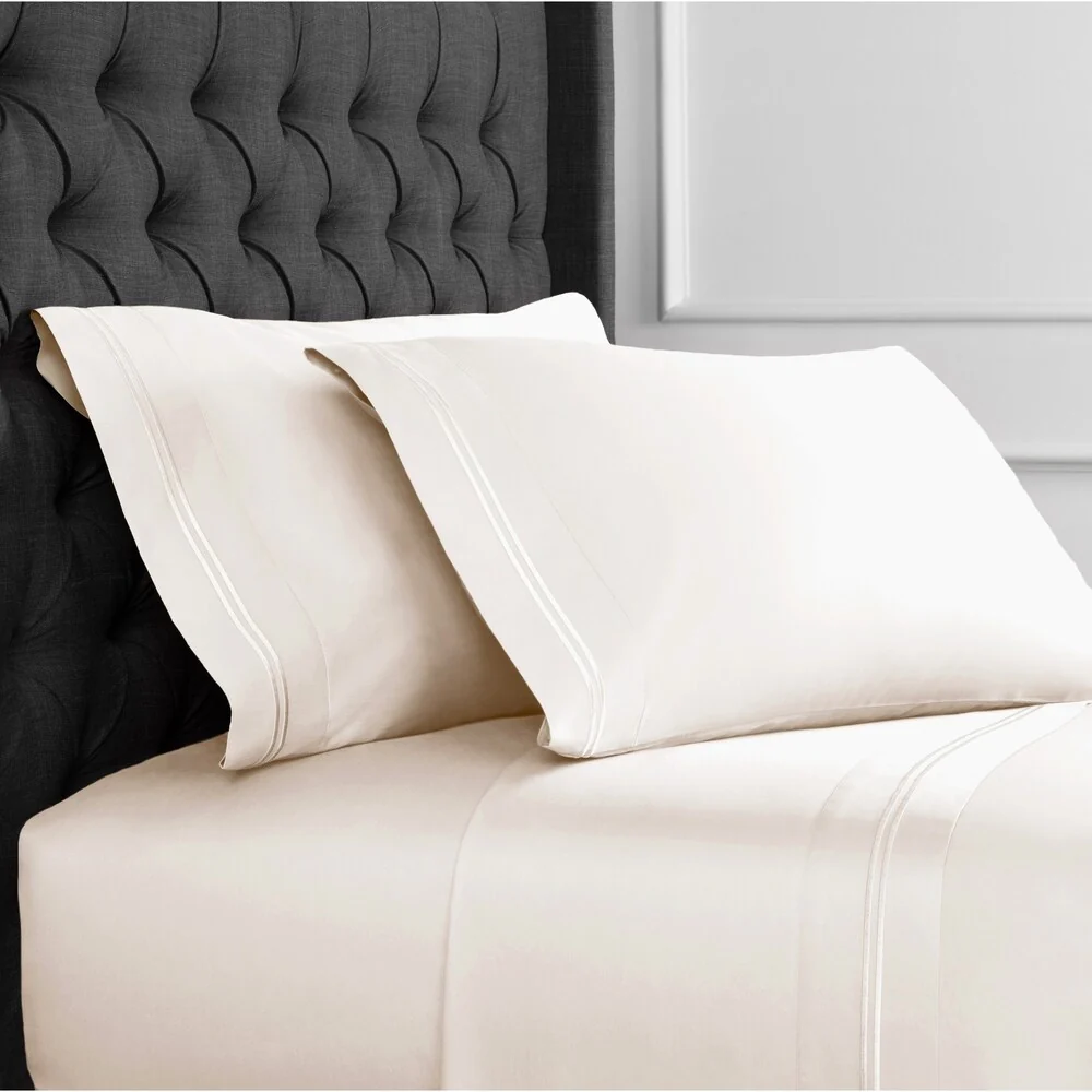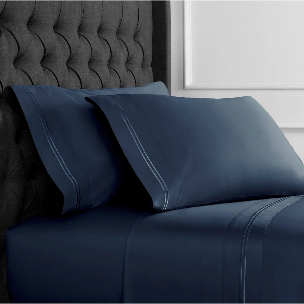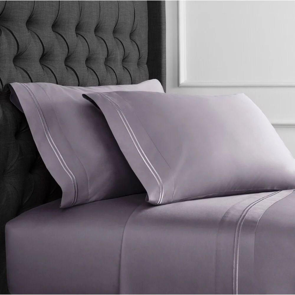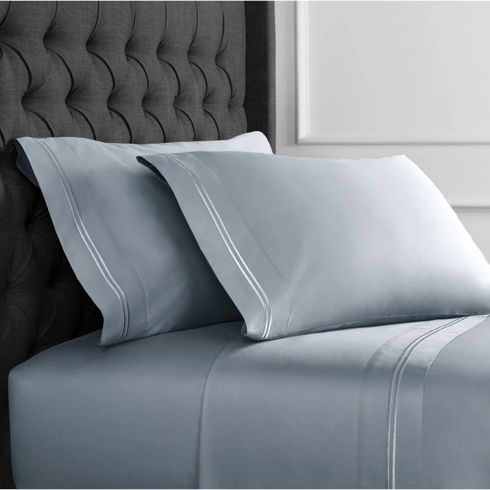 Experience a high-quality bedding experience with this sheet set. Featuring a 600 thread count, this cotton sheet set stays fresh and cool during hot nights and warm on cold nights. Each sheet features an attractive striped embroidery detail that adds a decorative touch to your bedroom’s interior design aesthetic.