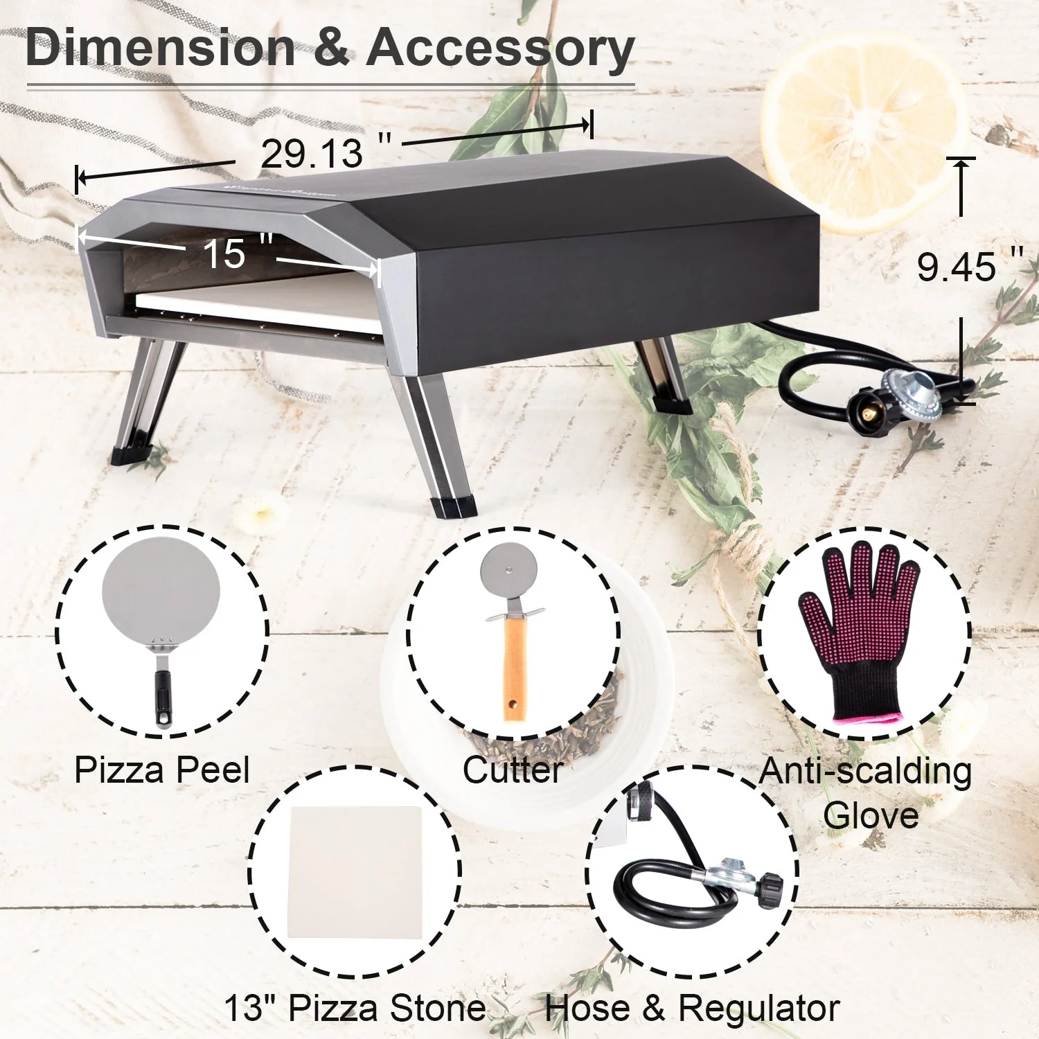 - Premium Material: Outdoor gas pizza oven is constructed with a strong deform-resistant press cast aluminum frame. This sturdy and compact oven is safe for cooking all types of foods. 3-Layer oven body design preserves more heat in case the pizza becomes cold.