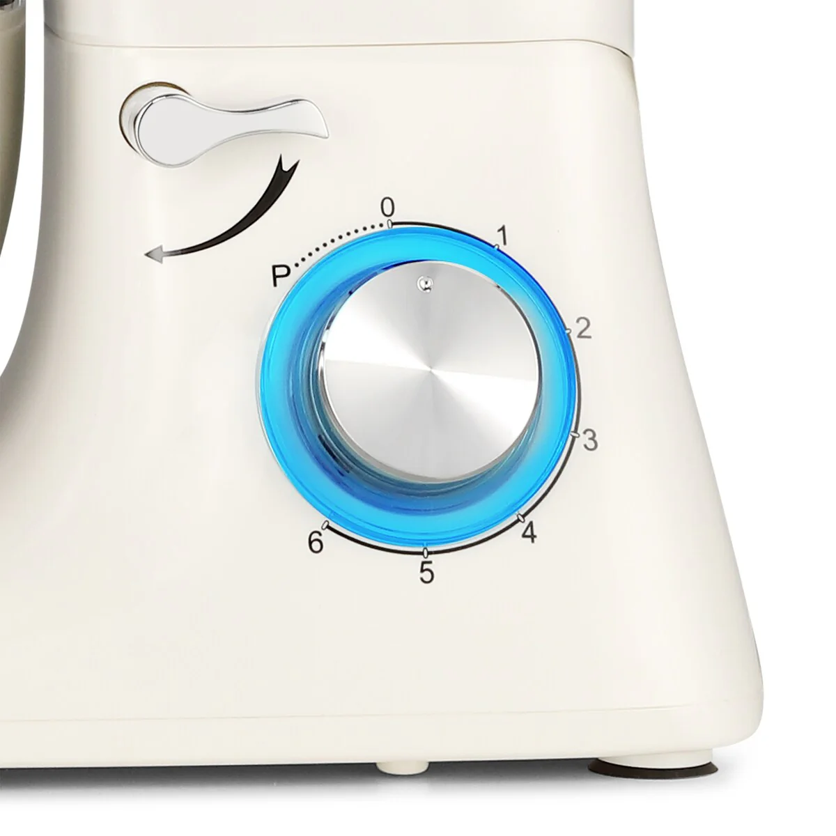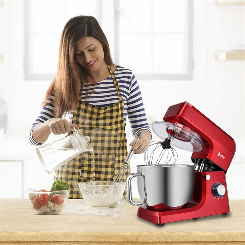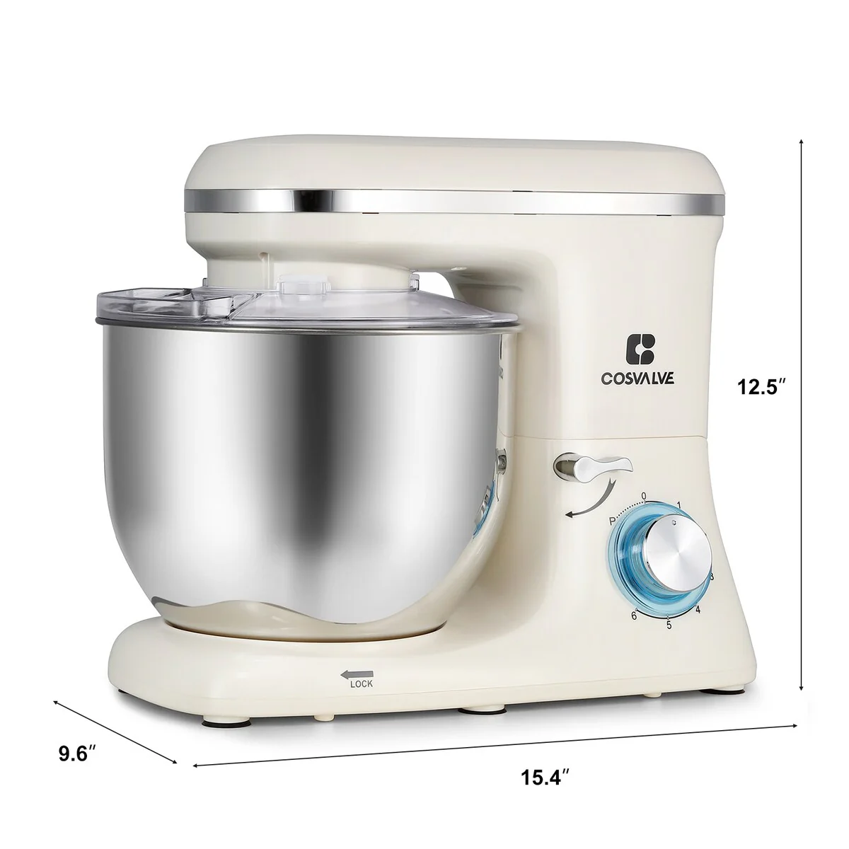 Features:660W High performance pure copper motor.6 Optimized speeds with pulse function.7QT Large stainless steel bowl.Stainless steel decoration belt.Blue LED light as power indicator.Low operation noise ≤76dB.Dishwasher safe accessories. ETL/FDA Certificate.Anti-slip pad & Sturdy ABS housing.Tilt-head design mixer allows access to install or uninstall bowl and accessories easily. Splash guard with access hatch helps add ingredients during processing without making a mess.Packing Contents:1 x Stand Mixer1 x Flat Beater1 x Dough Hook1 x Whisk1 x Tilt-up knob1 x Stainless Steel Bowl1 x Bowl cover1 x Output shaft1 x Speed control dial