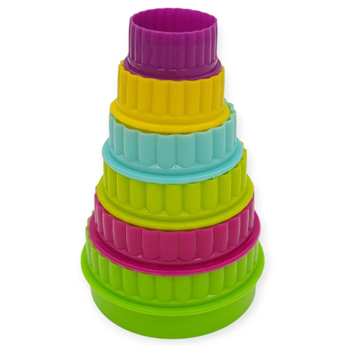 - Crafted from colorful and easy-to-clean plastic, these cookie cutters nest within each other for convenient and compact storage. Say goodbye to cluttered kitchen drawers and hello to organized baking essentials!