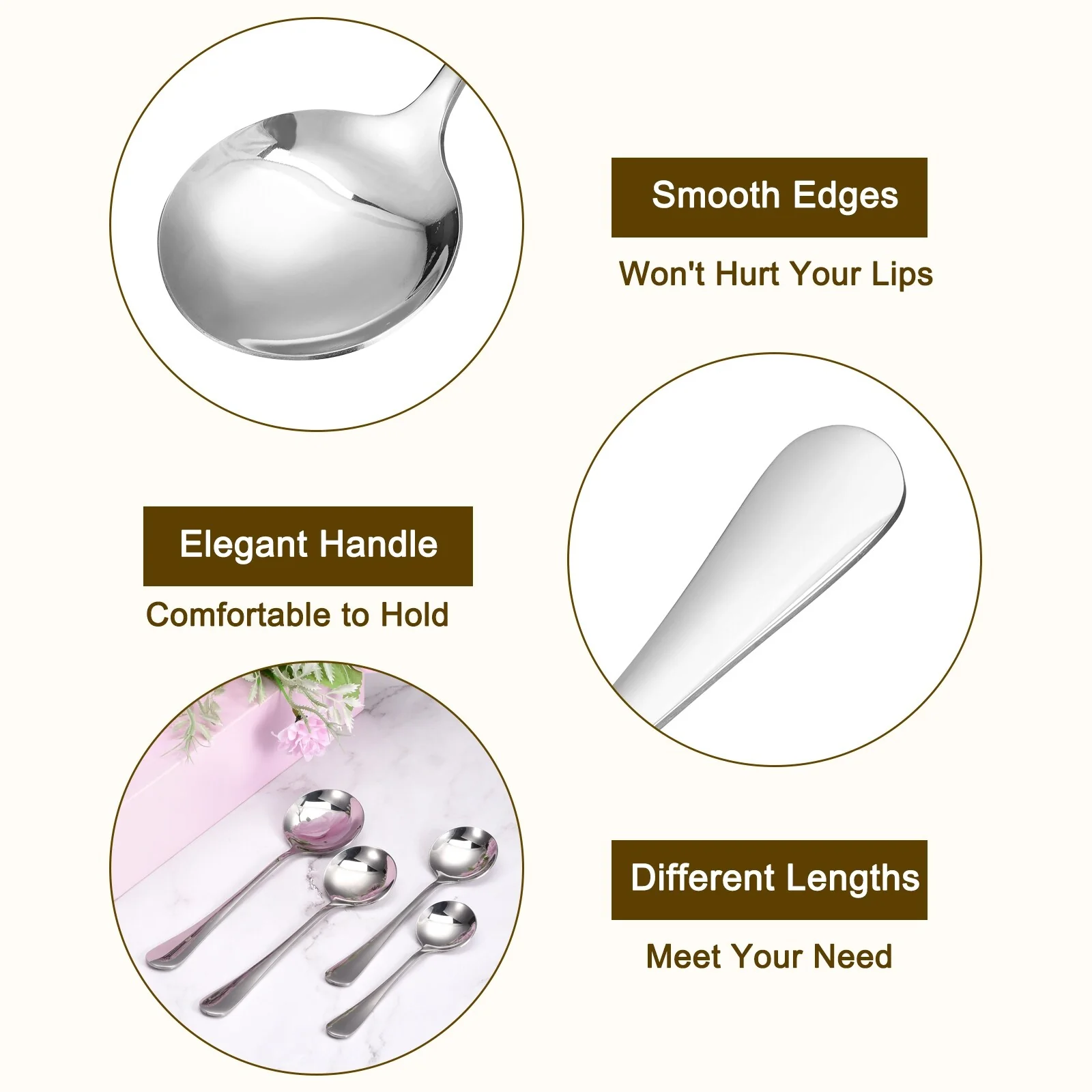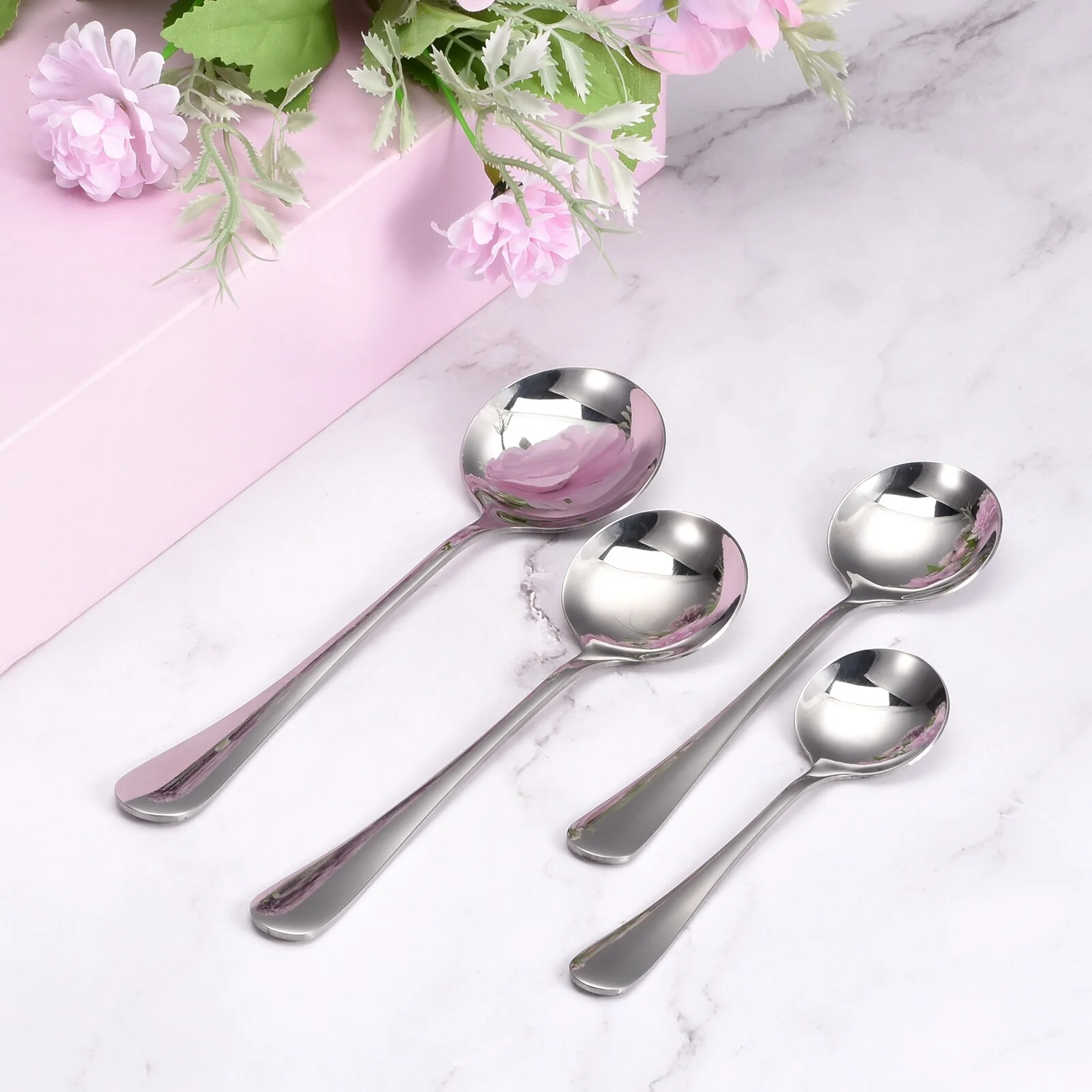 - The dinner table spoons are perfect for soup, bouillon, sauces, dessert, appetizers, pudding, ice cream, coffee, and more and suitable for home, shop, coffee, bar, restaurant, etc.