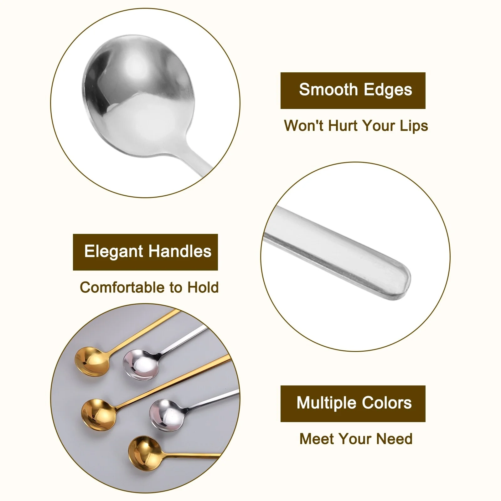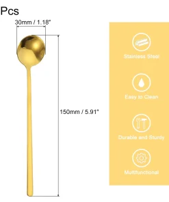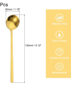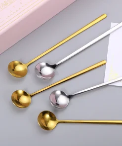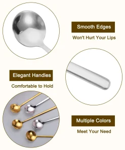 - The teaspoon with elegant handles, is comfortable to grip, has a smooth surface with no rough edges, is suitable for stirring and mixing drinks, and won’t hurt your lips and hands. Stylish and simple round shape ice cream spoon, a good decoration for your tea time, creating a wonderful time with your friends and families.
