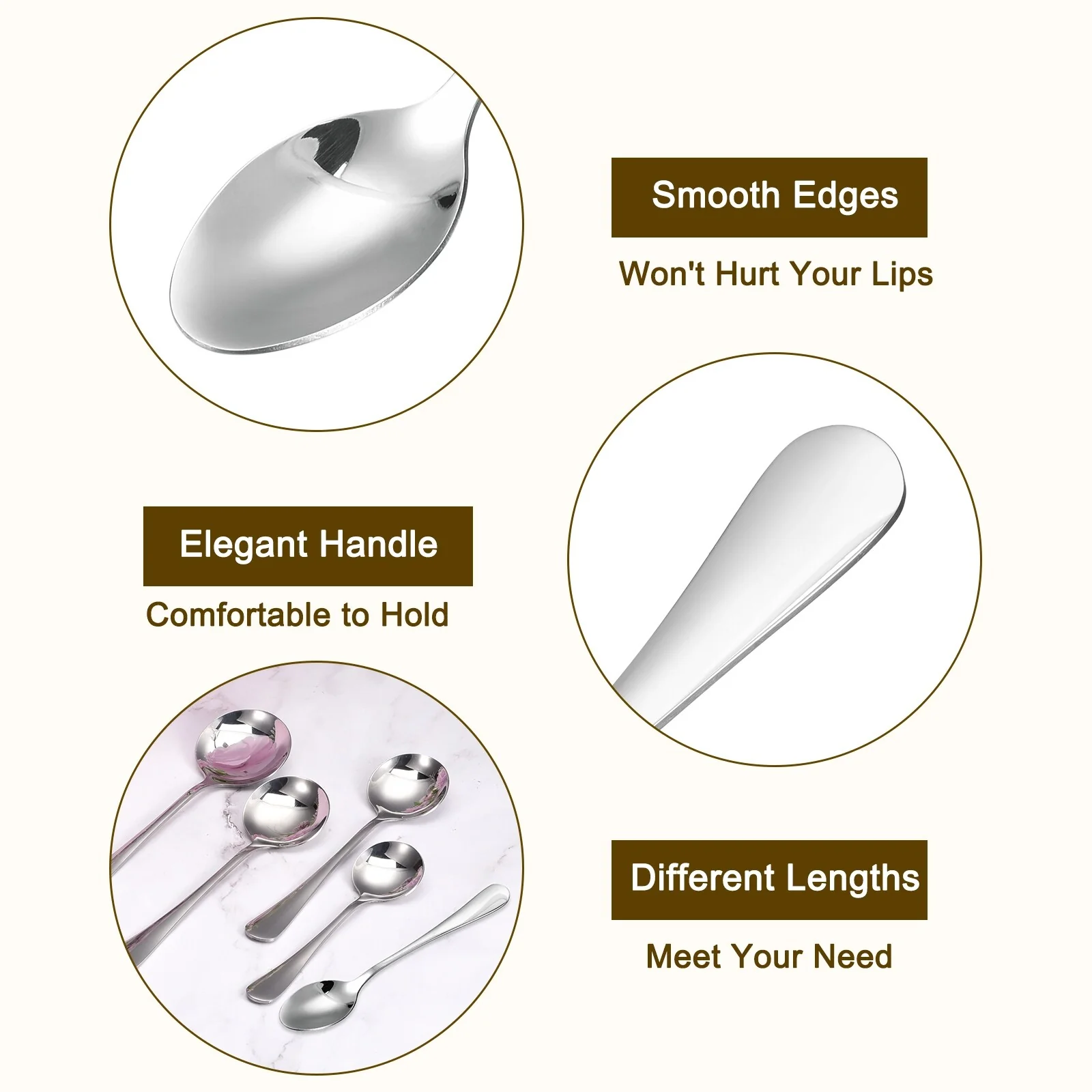 - The small dinner spoons are made of premium stainless steel material with a mirror polishing finish, bright in color, sturdy and durable to use, not easy to bend or rust, reusable and have a long time used without tarnishing.