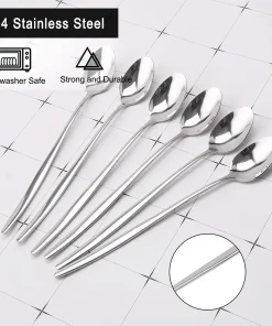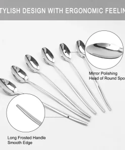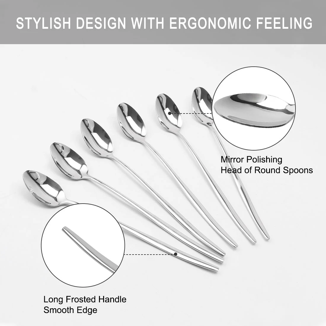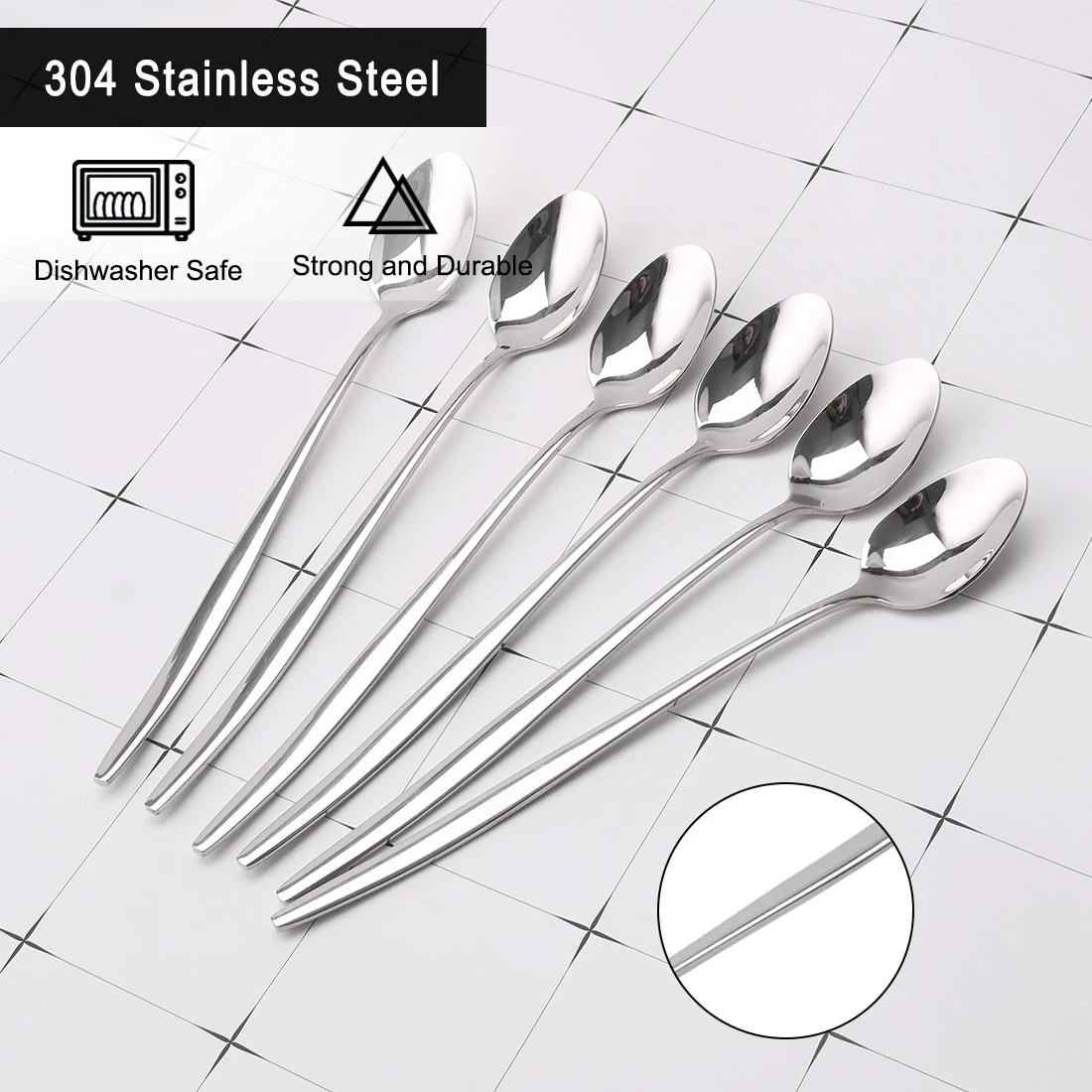 Long Handle Spoon is perfect for most glasses, Also used as ice cream spoons, ice teaspoons, coffee mixing spoons, cocktail stirring spoons. And Long enough for tall coffee mugs.