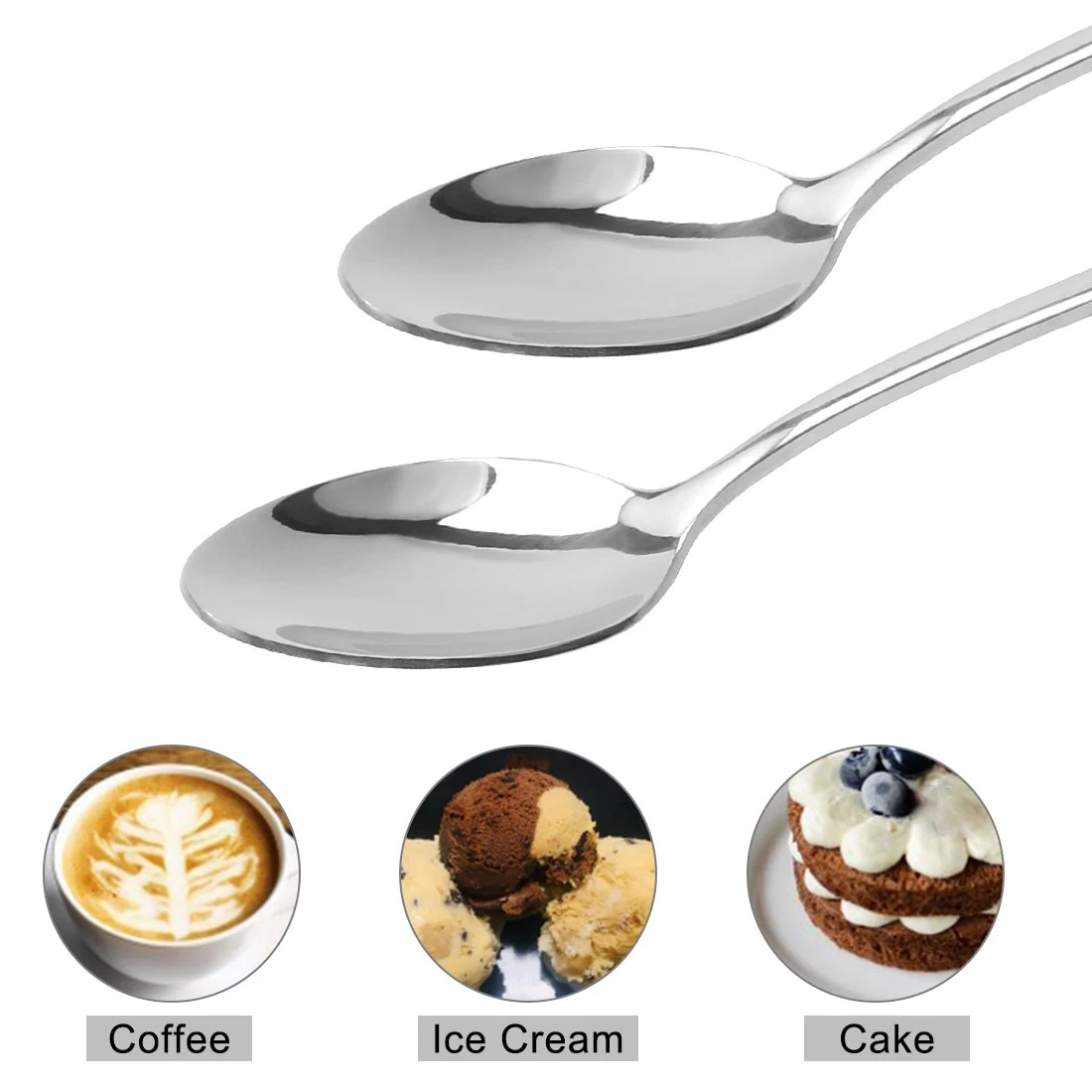 - Handle Design: The Long Handle Spoon Crafted from great quality Stainless Steel, Very Durable and Sturdy, suitable for scooping ice cream, frozen desserts, can be used for years.