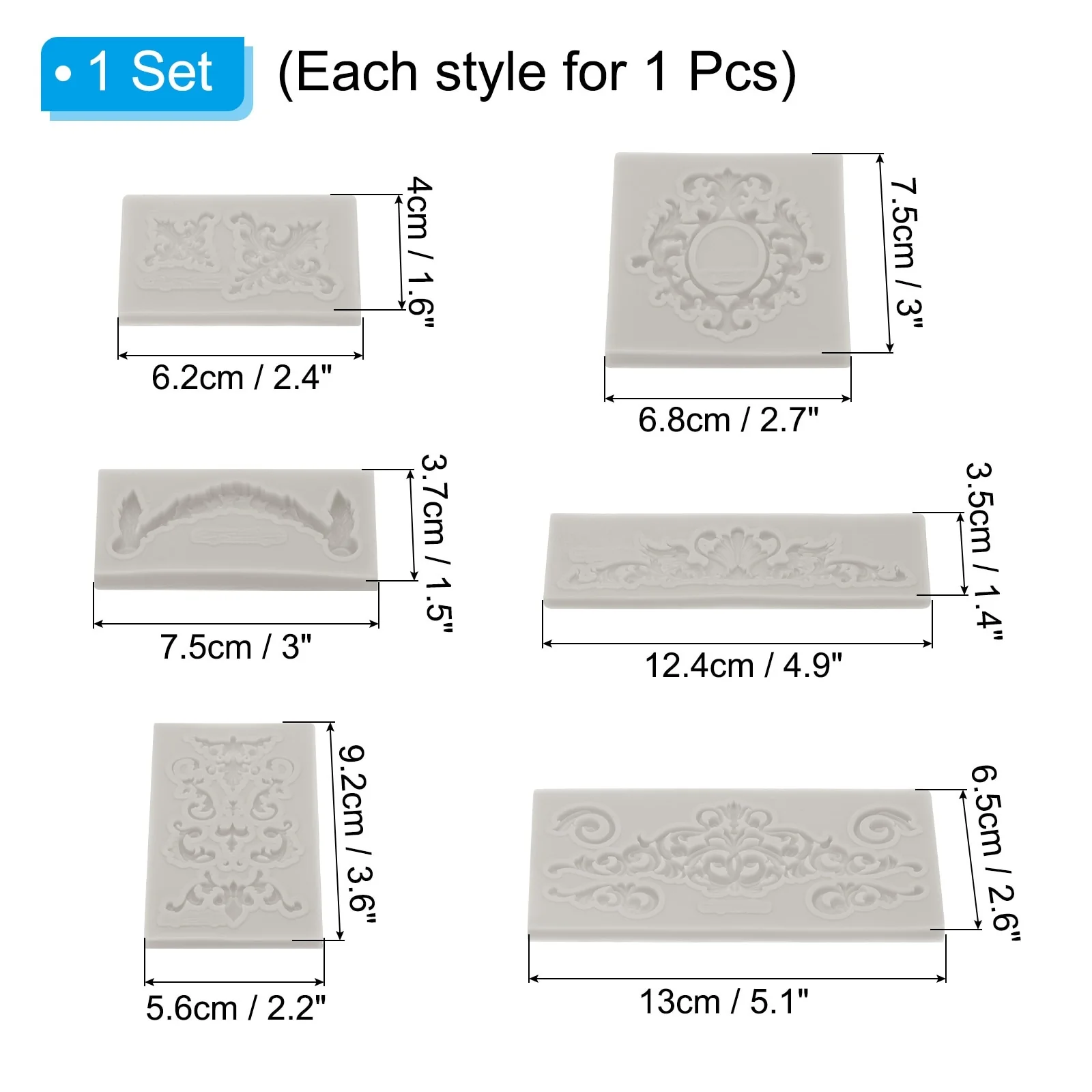 6PCS Polymer Clay Mold, Fondant Mold 3D Baroque Iod-Mold Silicone Rose