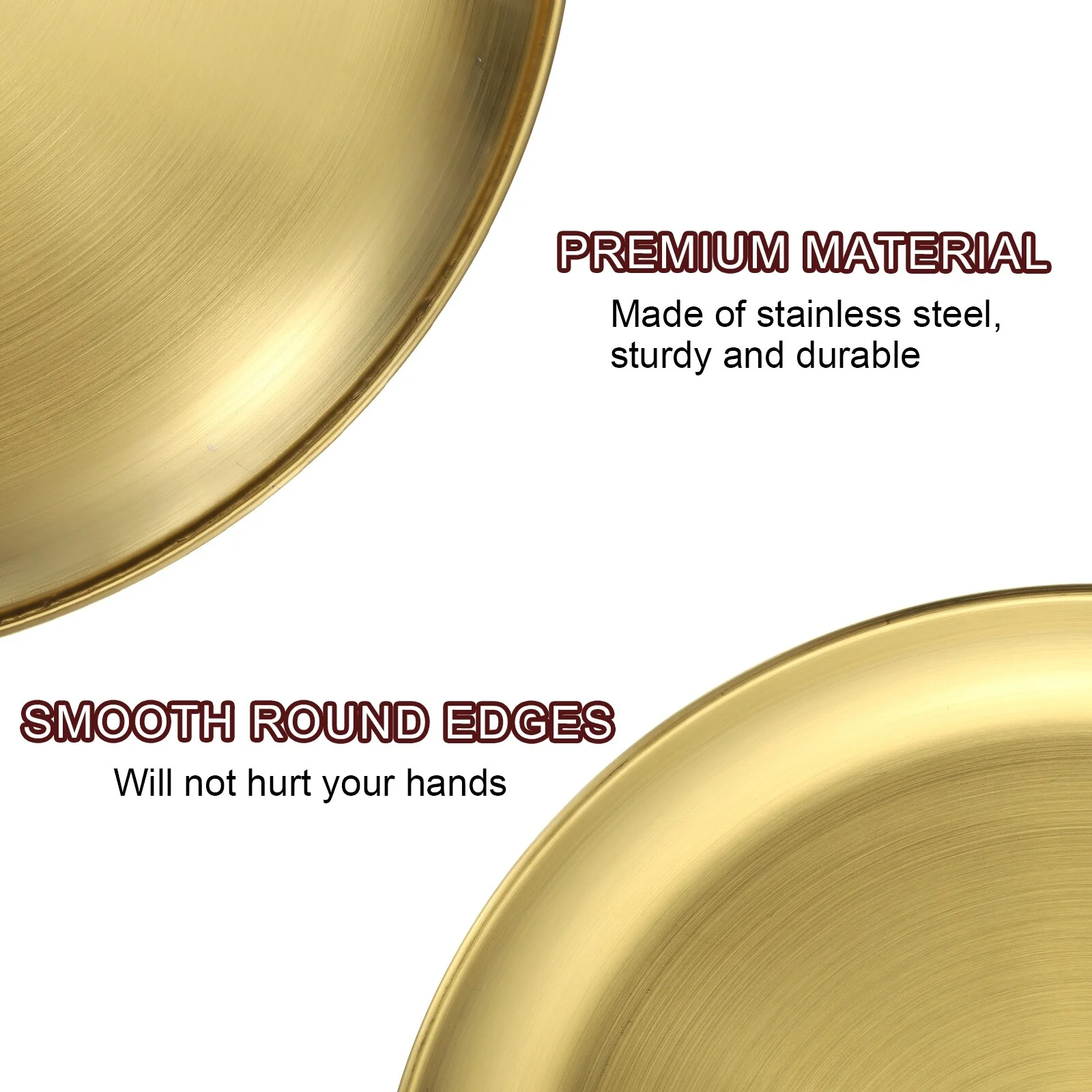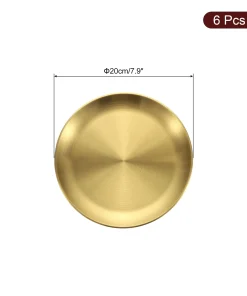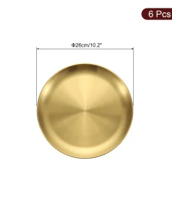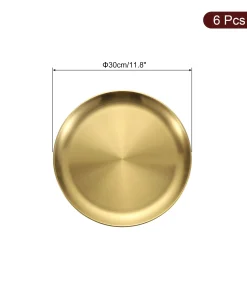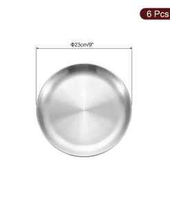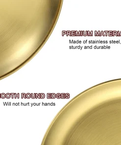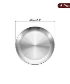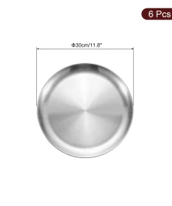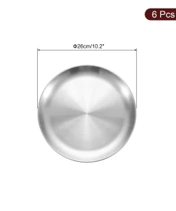 [Material] – Made of stainless steel, has no peculiar smell, resistant to corrosion and rust, withstands daily wear and tear, is sturdy and durable, and is not easy to deform or break.[Design] – The plate can avoid heat and cold hurting hands and lips, is lightweight and stackable, and is convenient to carry out, such as camping, hiking, traveling, picnics, outdoor activities.[Easy To Clean] – The stainless steel dinner plates can be hand-washed and or put into your dishwasher for easy cleanup. Â You can use them almost anywhere indoors or outdoors.[Wide Application] -This round serving tray is suitable for holding cupcakes, candy, pasta, fruits, snacks, and other items.