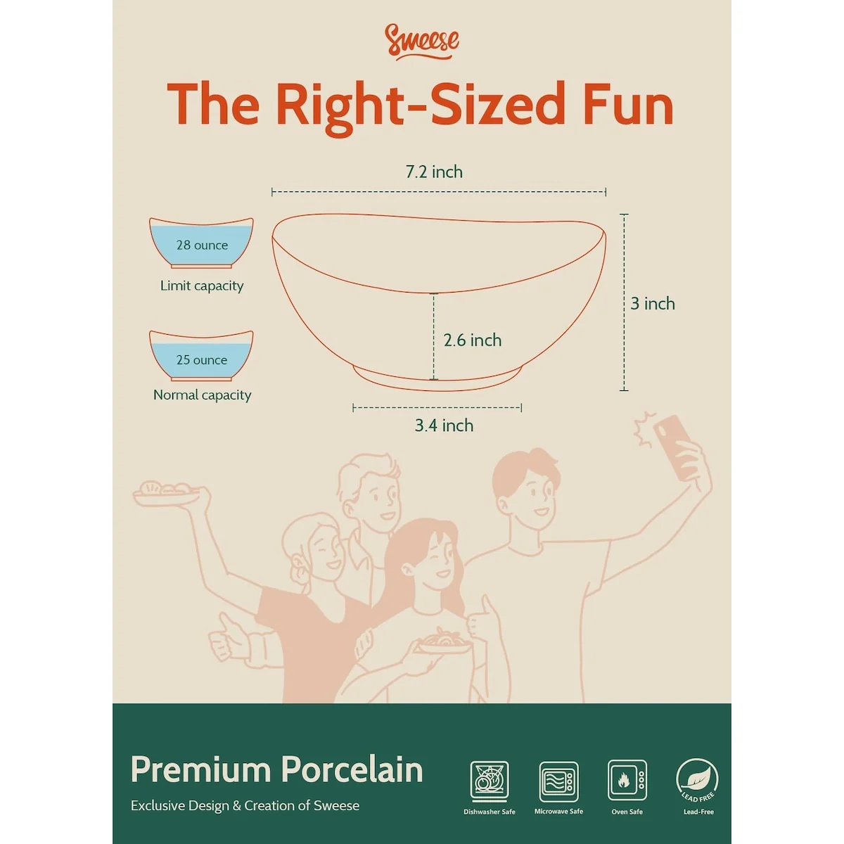 7 Inch Porcelain 28 oz Bowls Set of 6, for Soup Cereal Pasta Salad Ramen – Microwave, Dishwasher, and Oven Safe – White