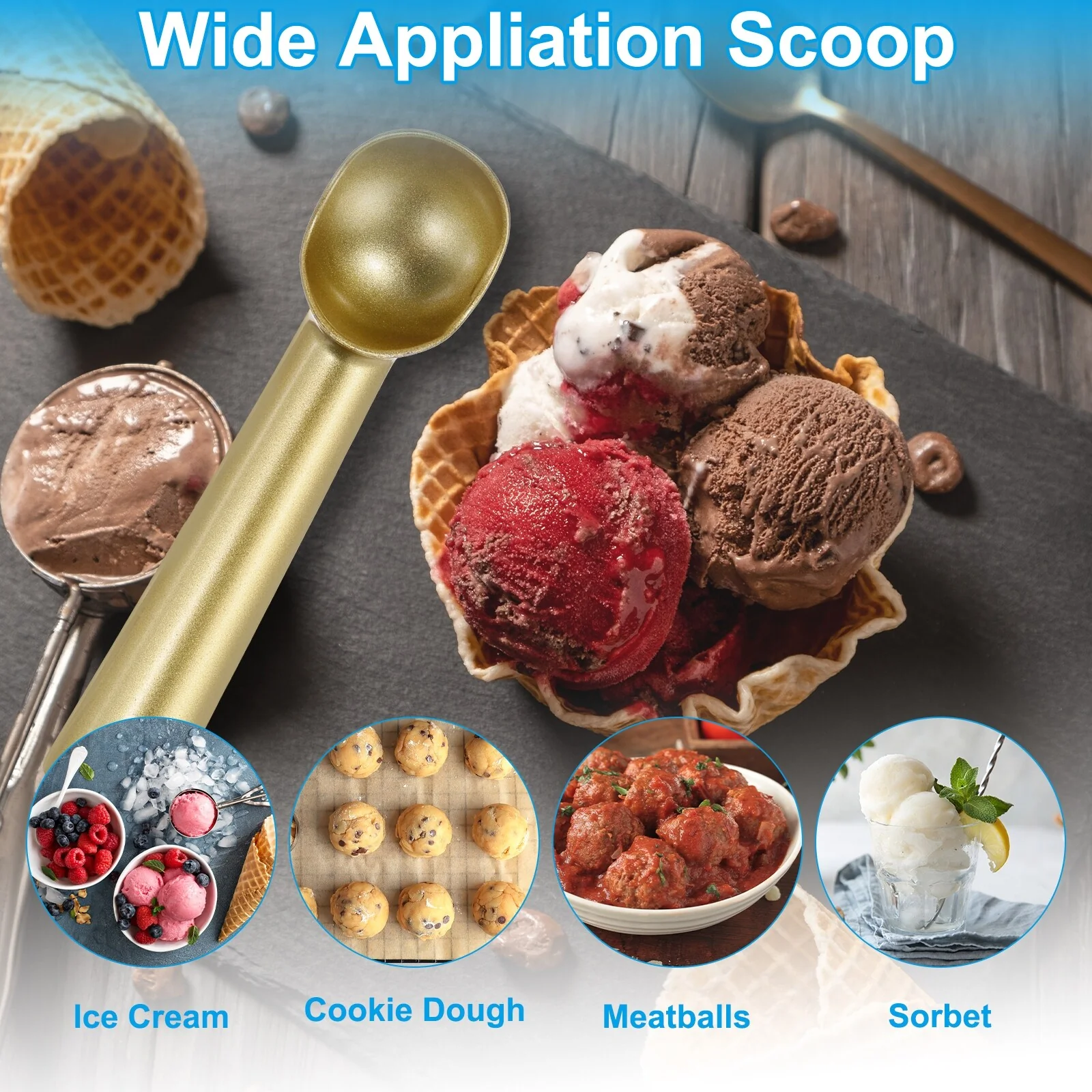 This multifunctional scoop is and is not only applied to ice cream, can also be used to scoop other frozen desserts such as sorbet, ice cream, or frozen yogurt. Plus, it can be used to portion out cookie dough or make perfectly round meatballs, making scooping effortless and enjoyable.