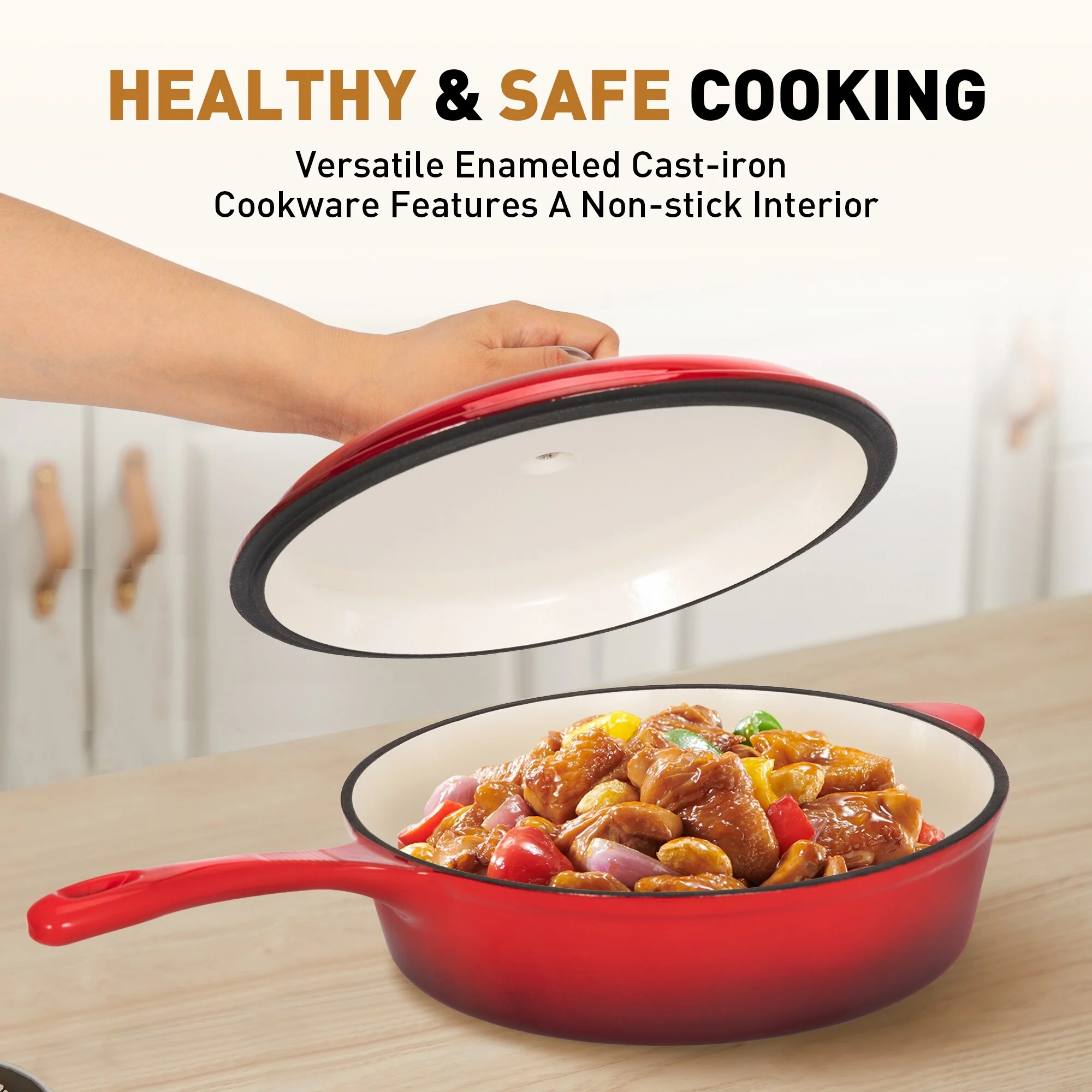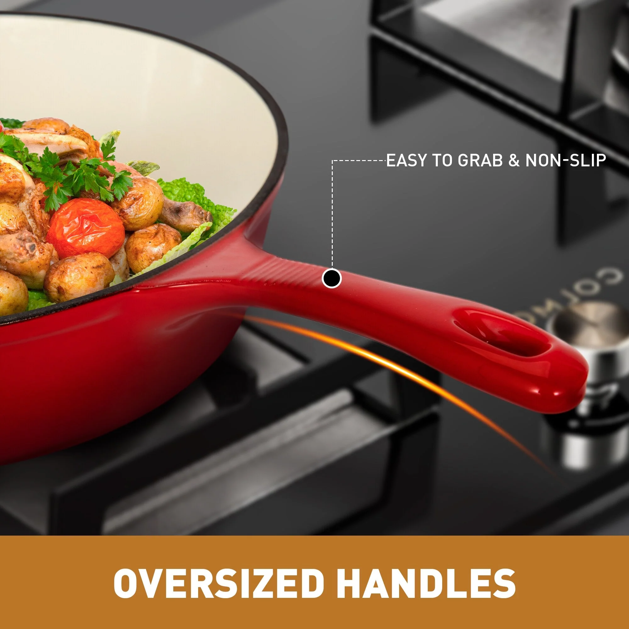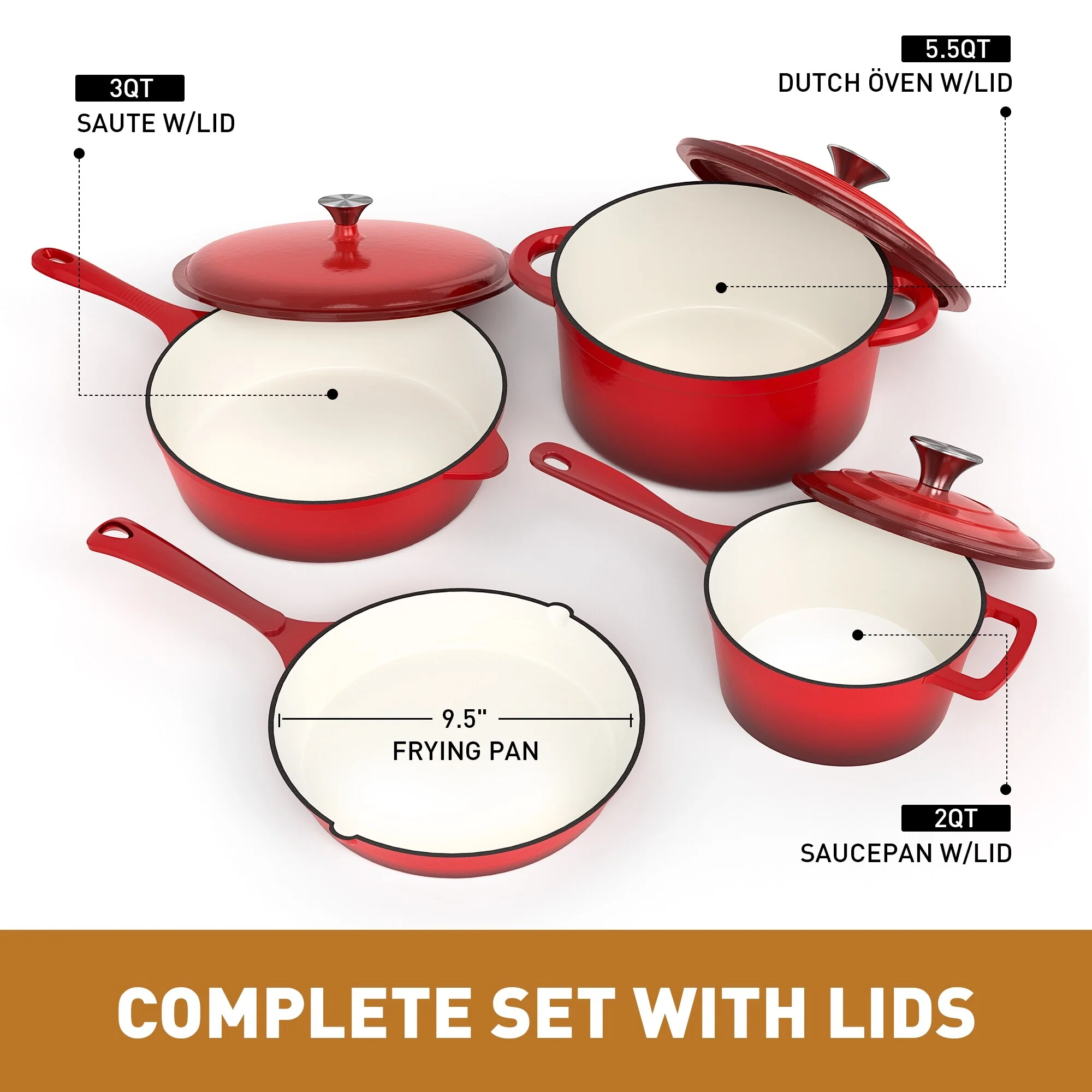 Healthy Cookware Sets: This gorgeous red cookware set features a durable enamel coating that resists cracking and scratching. The non-stick surface makes cleanup quick and easy, with most spills wiping away effortlessly. Plus, our coating is free of PFOA, PTFE, lead, and cadmium, making it an ideal choice for healthy cooking.