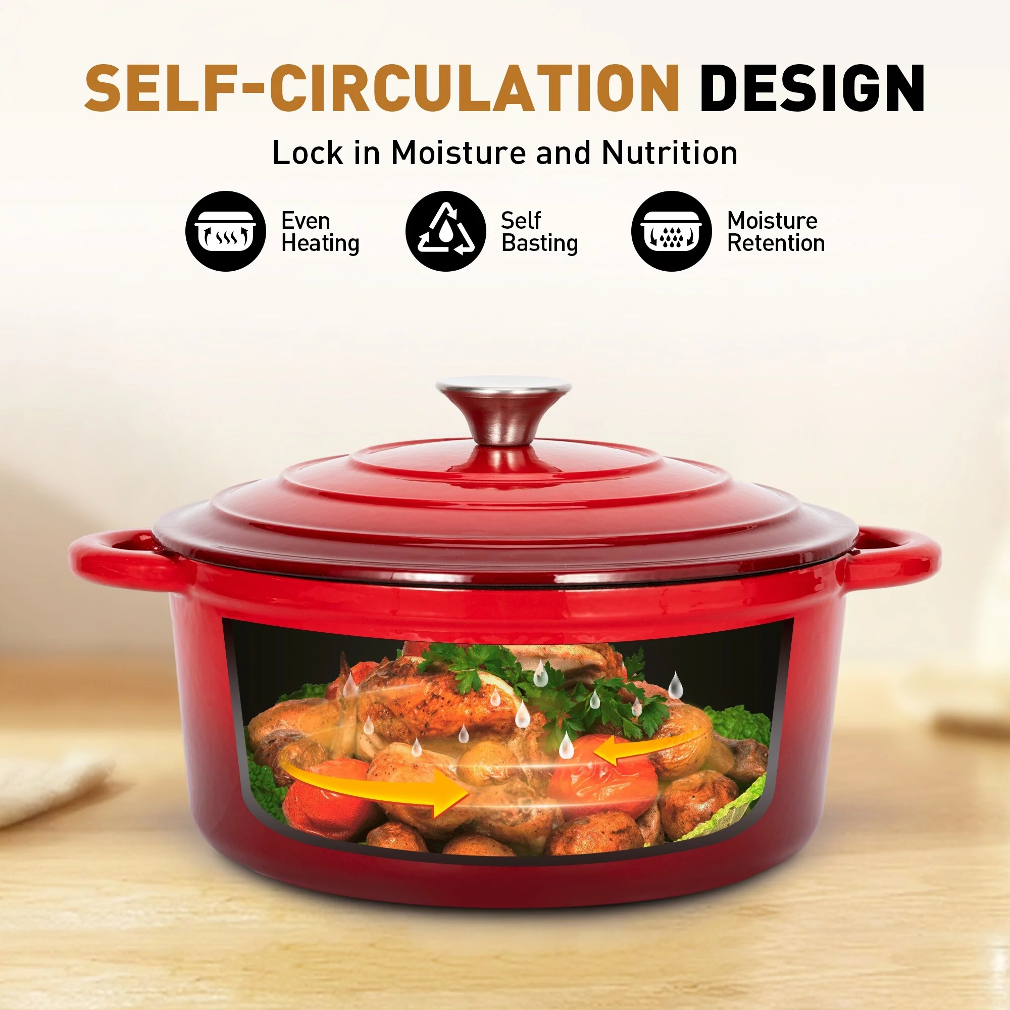 Exceptional Insulation Performance: Our cast iron pots and pans set offers outstanding heat distribution and retention, ensuring your meals are evenly cooked from both the bottom and sidewalls. The snug-fitting lid keeps moisture locked in, perfect for delicious pot roasts, hearty stews, or large batches of beans. With a heavy cast iron structure, this cookware retains heat for longer, so your food stays warm and flavorful, even after being removed from the heat source.