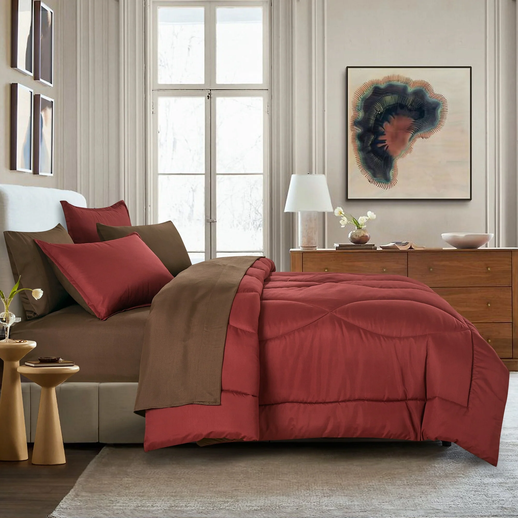 Full: 1 comforter 82"X 88" and 2 shams 20"x26"; Flat   Sheet 81"x96"; Fitted Sheet 54"x75" 14"; Pillowcase   20"x30" Â