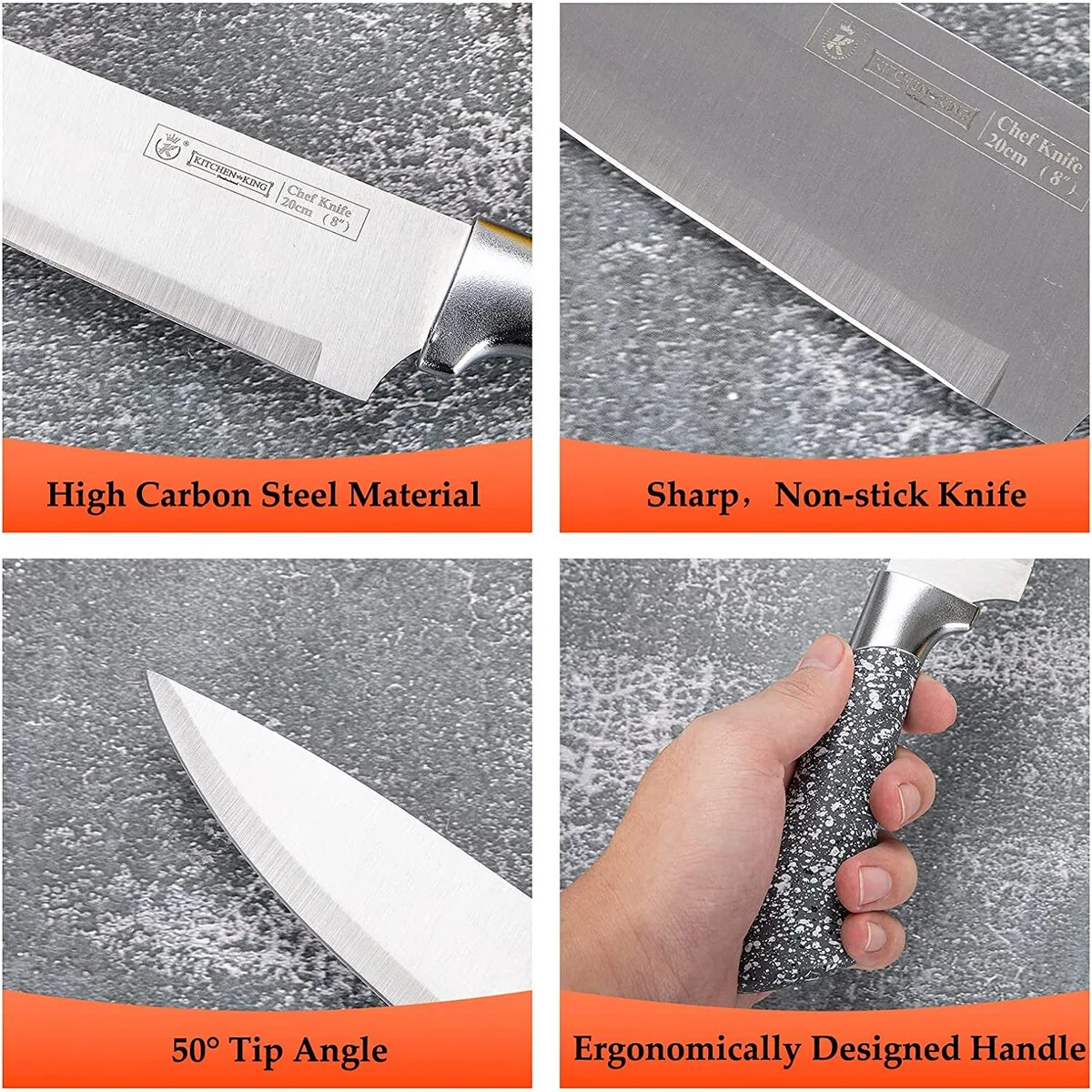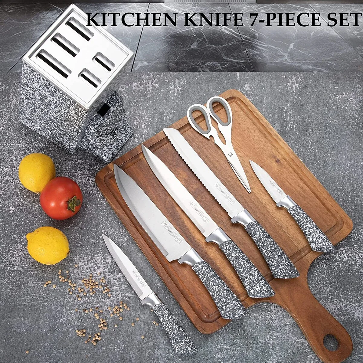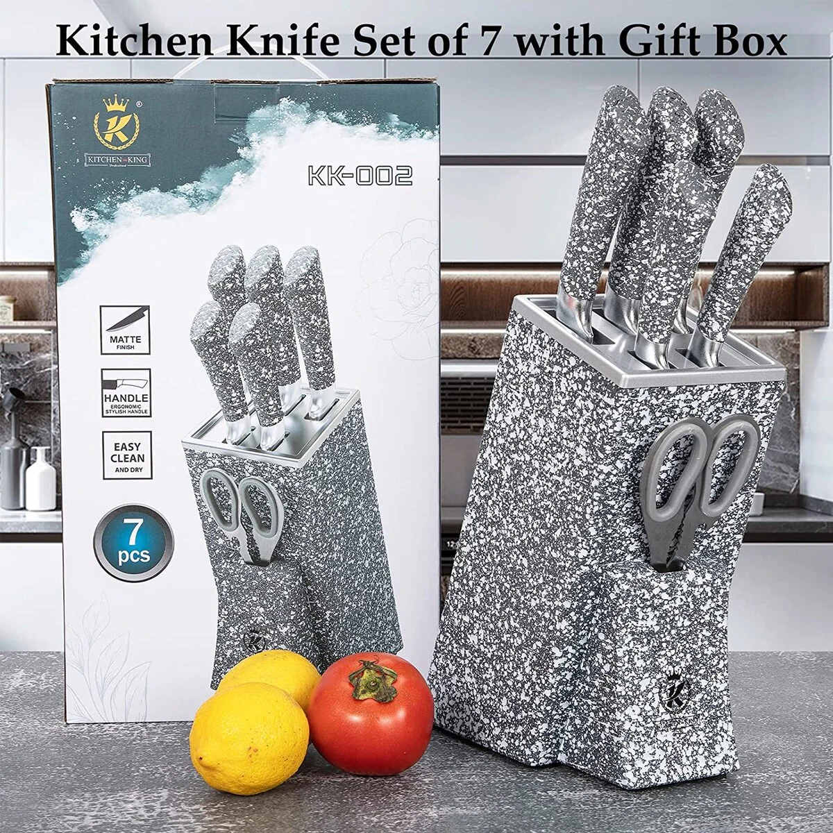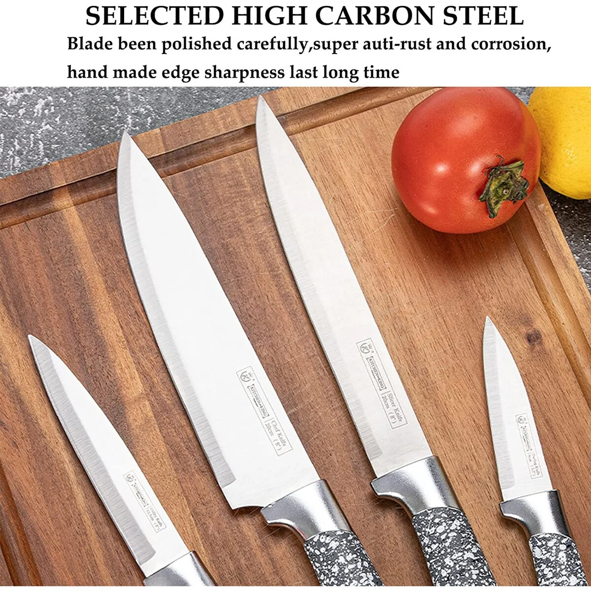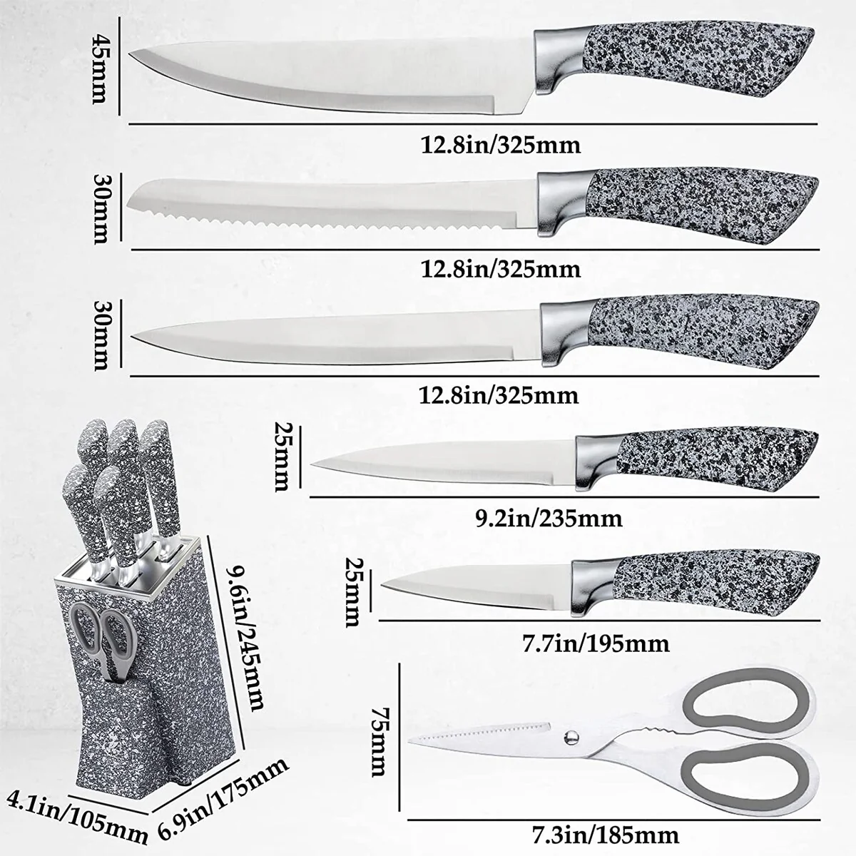 - 【Storage Knife Holder】The knife holder is made of granite spray paint, which is beautiful and durable. After use, the knives are stored in the knife holder, which does not take up space, making your kitchen look clean and tidy without losing style.
