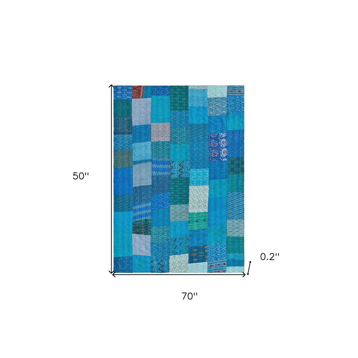 Bring warmth, comfort and style to your space with this 70-inch x 50-inch blue kantha silk patchwork throw blanket with embroidery. Featuring beautiful embroidery, this embellished throw is of the highest quality and design. Made from silk this blanket will make a great addition to any room it’s added to. Layering your furnishings with a decorative throw has the ability to awaken a tired living room or elevate the design of your bedroom simply by providing elements of color and texture that weren’t there before. This cozy throw blanket makes the perfect add-on to movie nights and lazy afternoons. 50-inch H x 70-inch W x 0.2-inch D