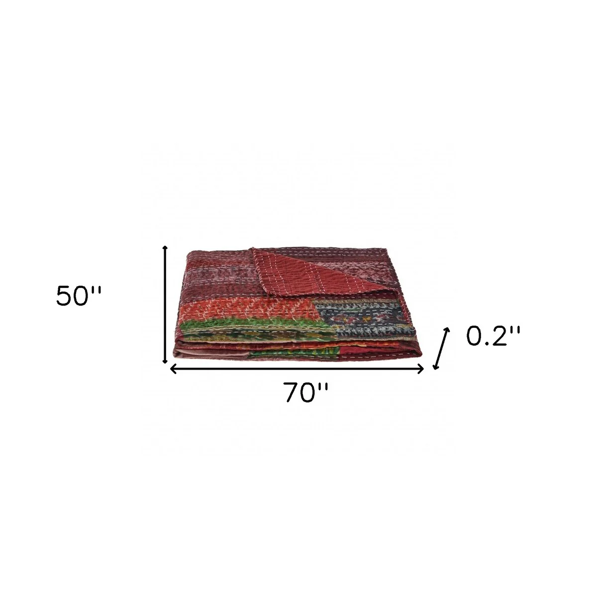 Bring warmth, comfort and style to your space with this 70-inch x 50-inch red kantha silk patchwork throw blanket with embroidery. Featuring beautiful embroidery, this embellished throw is of the highest quality and design. Made from silk this blanket will make a great addition to any room it’s added to. Add extra texture to your decor and turn your room into an inviting space. Perfect for your favorite chair, bed or lounging on the couch, this blanket helps bring a warm and fashionable flair to your space. 50-inch H x 70-inch W x 0.2-inch D