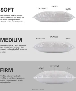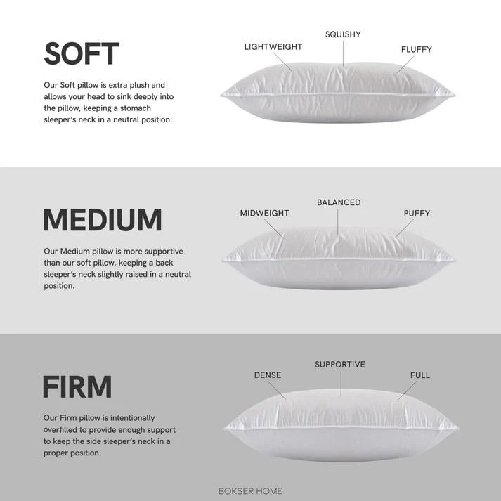 Filled with 90% premium white duck down and 10% duck feather, the support of the BOKSER Down Pillow is available in three different fill weights. Machine washable and dryable, the BOKSER HOME Down Bed Pillow is the perfect way to add airy and soft comfort to your bed.
