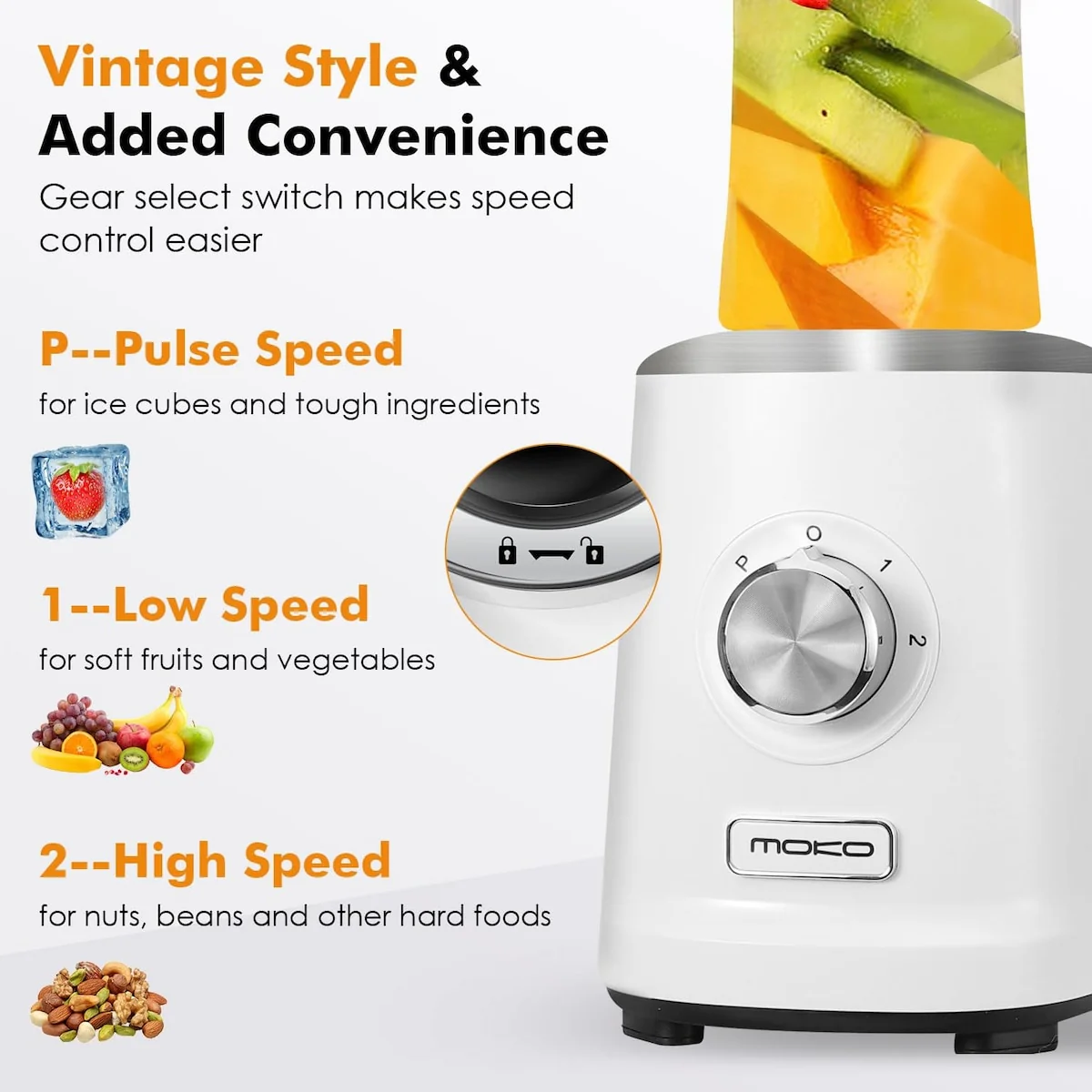 【Pulse Tech & Vintage Style】Vintage-inspired design makes smoothie blender look more fashionable, with powerful pulse technology to achieve higher juicing efficiency. smoothie blender is equipped with a safety lock and over-heat prction, which only works when the blender cup is properly locked into the base.