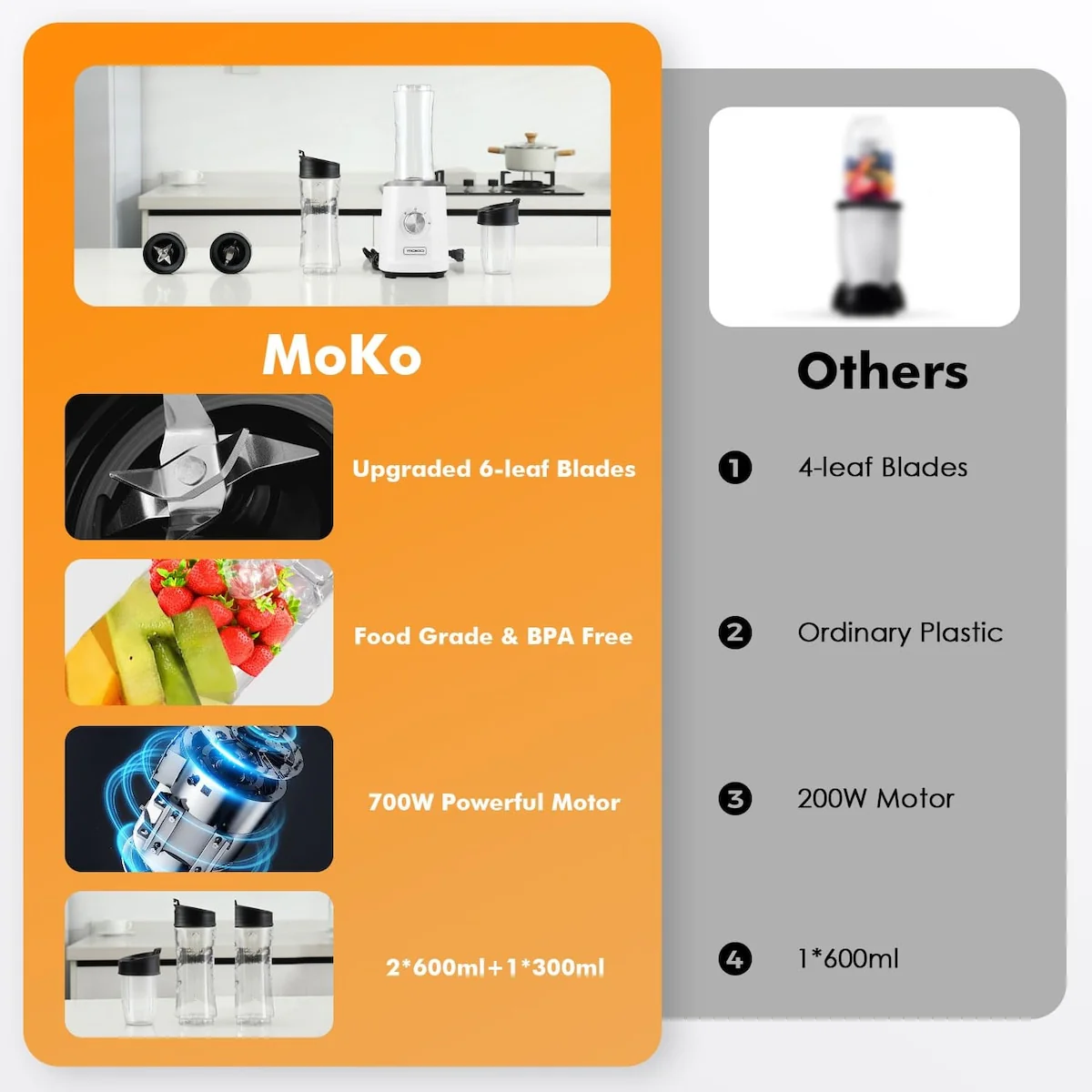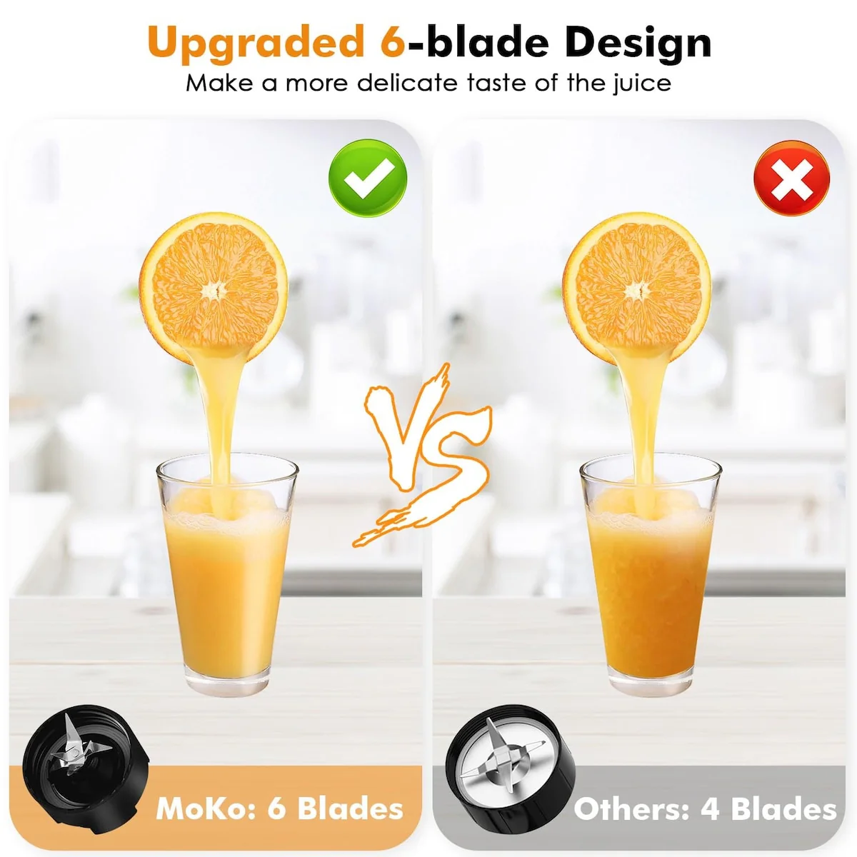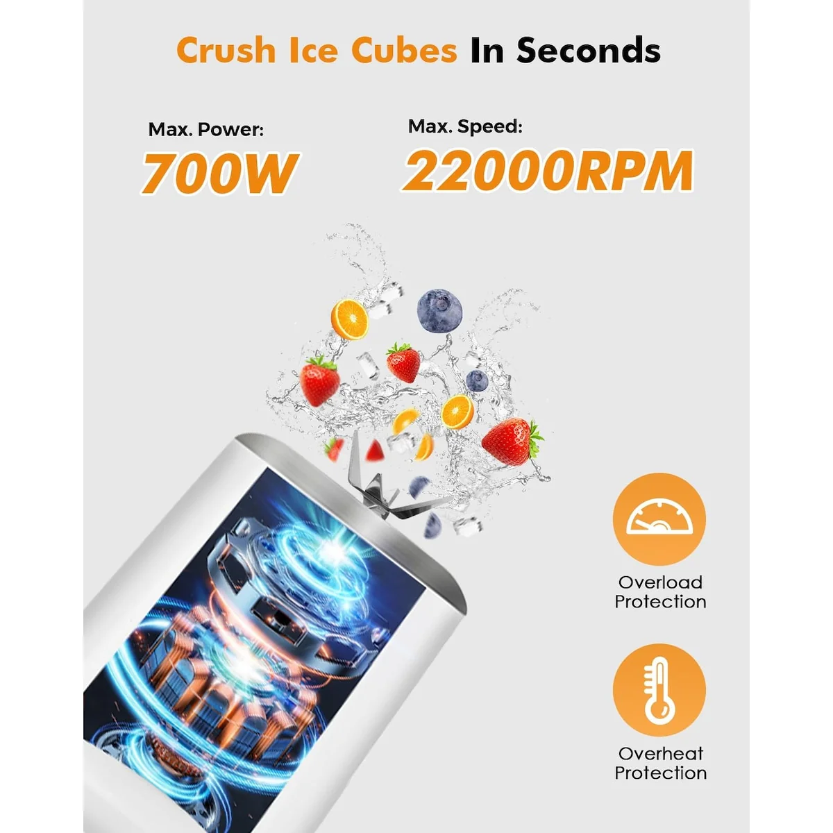 【Upgraded 6-point Stainless Steel Blades】 personal blender adopts newly upgraded 304 stainless steel 6-blades and 700W powerful motor, ideal for blending smoothies, shakes, juices, frozen drinks. Provide 30%- 50% higher efficiency than that of 4 blades in mixing.