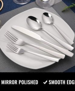 - ELEGANT DESIGN AND PREMIUM FINISH: Take your dining experience to the next level with the sleek design and durability of this silver flatware set. It is made of high quality 18/8 stainless steel with a polished finish that won’t fade, ensuring long-lasting beauty.